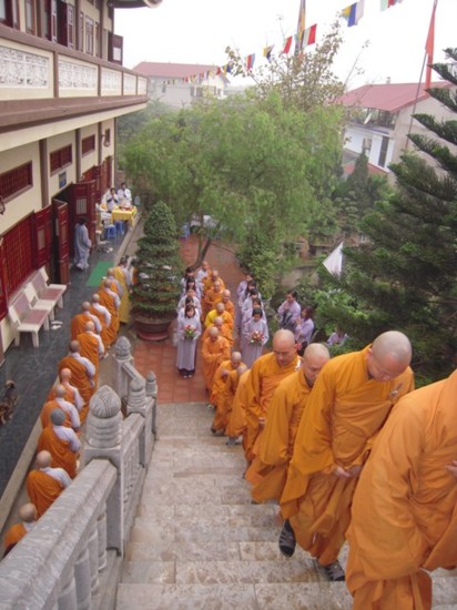hượng tọa đã ân cần nhắc nhở, sách tấn Tăng Ni Phật tử nhớ lại lịch sử hình thành của thiền viện Sùng Phúc, ý nghĩa của lễ khai pháp.