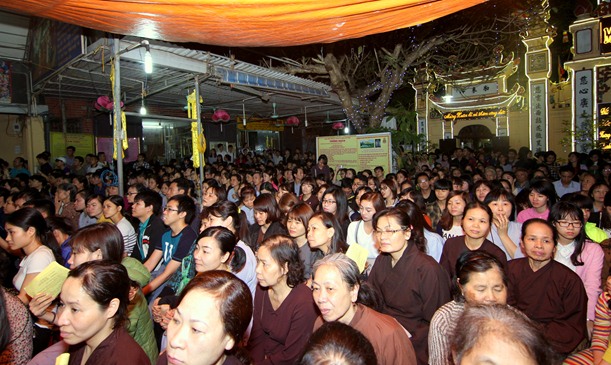 Cả khuôn viên chùa, bao gồm Giảng đường, Chánh điện, nhà Tổ, cổng trước, cổng sau đều phủ kín người, không còn chổ đi tới lui, nhưng tất cả đều tĩnh lặng… đã tạo nên một Pháp hội thật trang nghiêm, trong đó ai nấy đều chăm chú hướng mắt về vị Giảng sư để nghe giảng, vì đây là đề tài trông gần gũi, ai cũng muốn có sức khoẻ và nhắm tới một thời điểmkhi thọ mạng mình đã hết mà sức khỏe vẫn còn (tức khi ta có chết cũng khỏe mạnh mà chết chứ không phải chết dần mòn, chết trong oằn oại đau đớn).