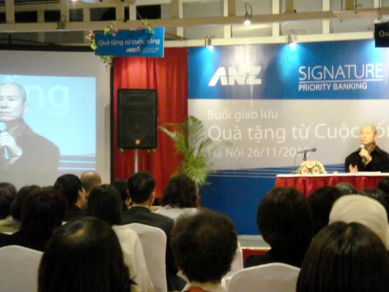 Trước khi đi vào chủ đề chính của buổi giao lưu, đại diện Ngân hàng ANZ giới thiệu với khách hàng của mình “Thượng tọa Thích Chân Quang là một vị Giảng sư uyên bác về Phật học trong thời đại hiện nay. Lời giảng của Thượng tọa đã làm lay động hàng triệu con tim dù là Phật tử hay cả những người chưa biết gì về đạo Phật. Vì vậy, Ngân hàng ANZ đã tổ chức buổi giao lưu nói trên để chủ các doanh nghiệp, các nhà đầu tư có cơ hội thấu hiểu hơn nữa về đạo đức làm người, về Phật Pháp qua buổi nói chuyện về chuyên đề của Thượng tọa”.