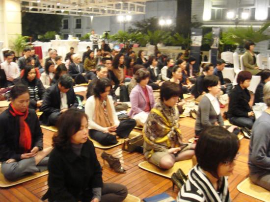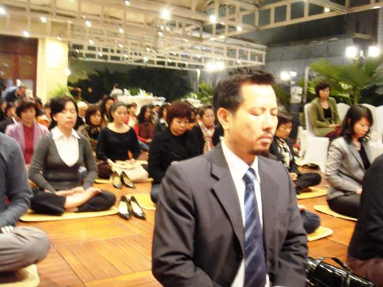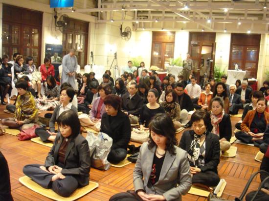 Trước khi kết thúc buổi giao lưu, Thượng tọa đã trực tiếp hướng dẫn thính giả thực hành ngồi thiền trong 30 phút ngay tại Hội trường. Trong 30 phút đó, do là các thiền sinh mới thực tập nên còn bỡ ngỡ, đau chân, ngả nghiêng. Mặc dù vậy tất cả đều thực hành ngồi thiền nghiêm túc, có nhiều cố gắng. Điều này chứng tỏ Thiền định có sức thu hút và được sự quan tâm đón nhận của mọi người, nhất là giới trí thức. Sau đó Thượng tọa còn trả lời các câu hỏi xoay quanh nội dung bài nói chuyện và lợi ích của việc tọa Thiền.