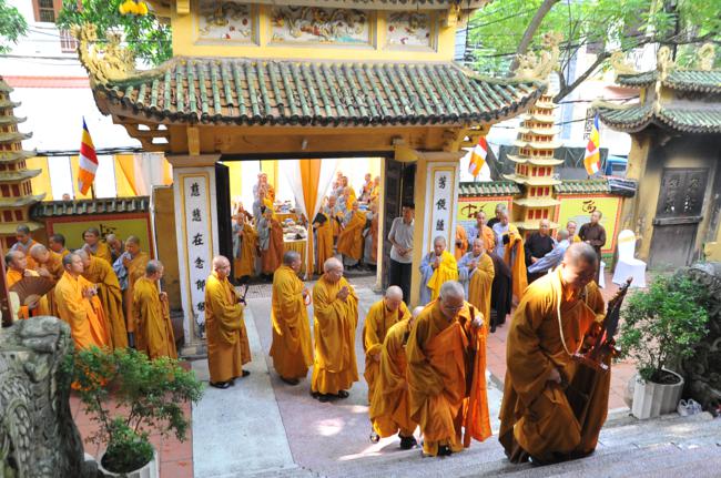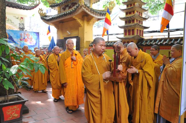 Về chứng minh tham dự có Đại lão Hòa thượng Thích Thanh Đàm – Phó Pháp chủ HĐCM GHPGVN; Hòa thượng Thích Gia Quang – Phó chủ tịch HĐTS kiêm Trưởng Ban thông tin truyền thông TW GHPGVN; Hòa thượng Thích Quảng Tùng – Phó chủ tịch HĐTS kiêm Trưởng Ban từ thiện TW GHPGVN; Hòa thượng Thích Thanh Hưng – Ủy viên HĐTS, Phó trưởng Ban hướng dẫn Phật tử TW cùng chư tôn đức tăng ni trong sơn môn Hòe Nhai và chư tôn đức trong BTS GHPGVN quận Ba Đình.
