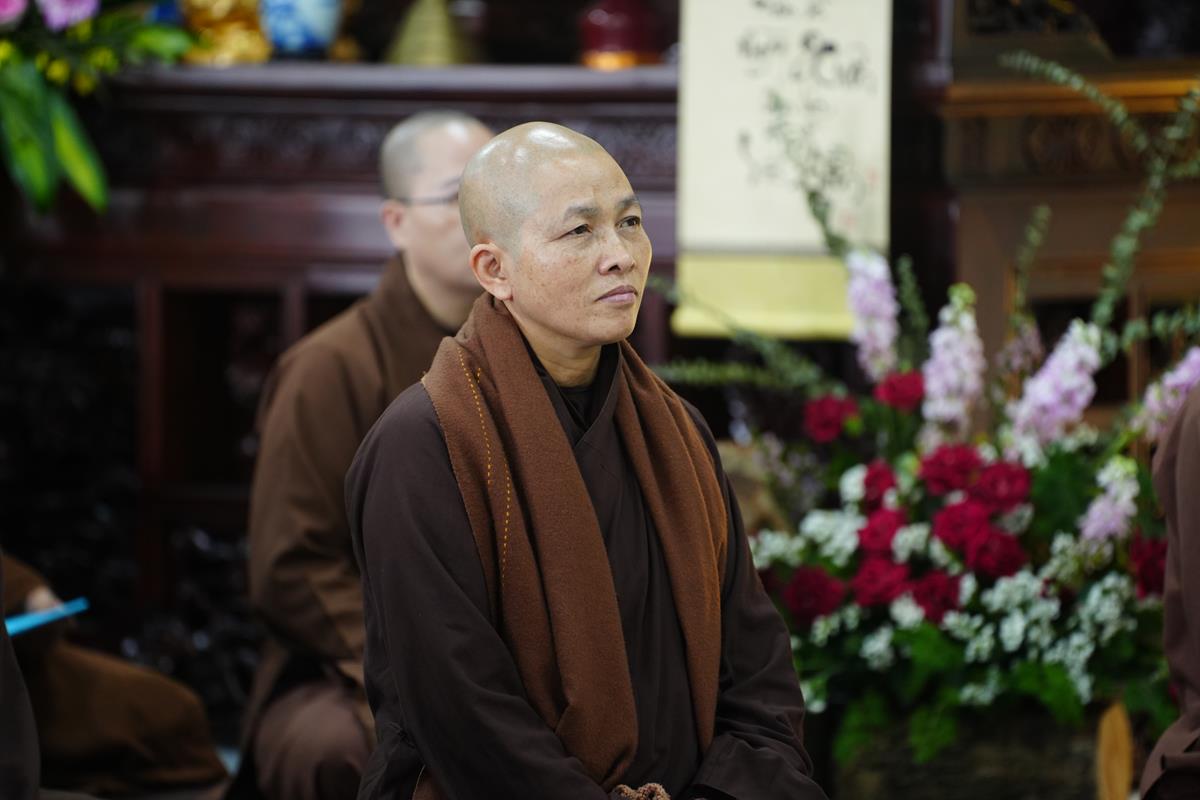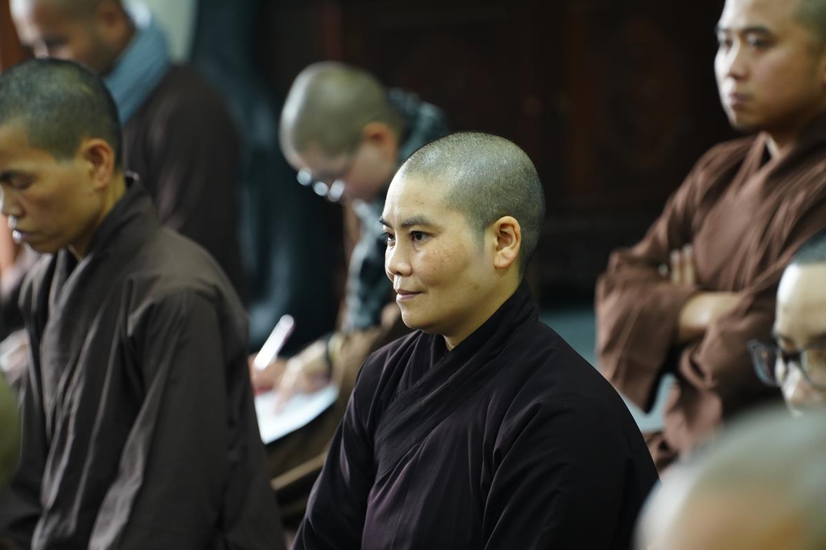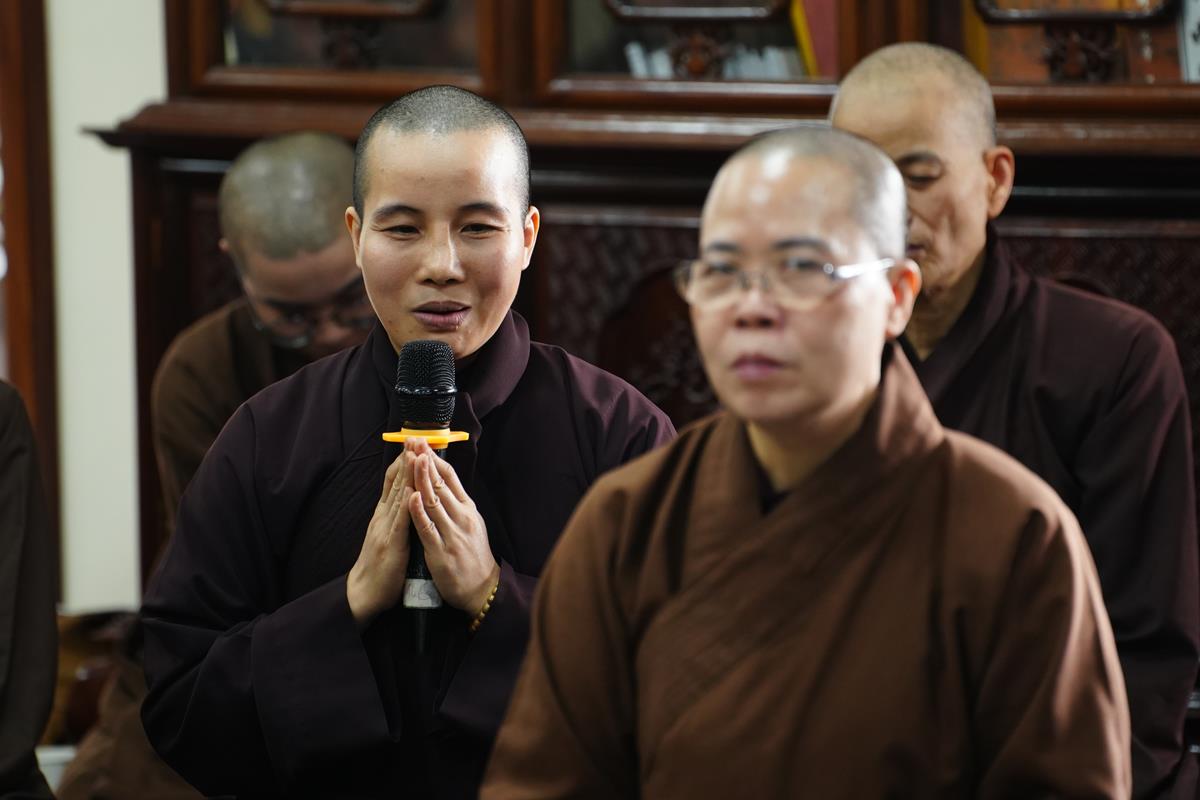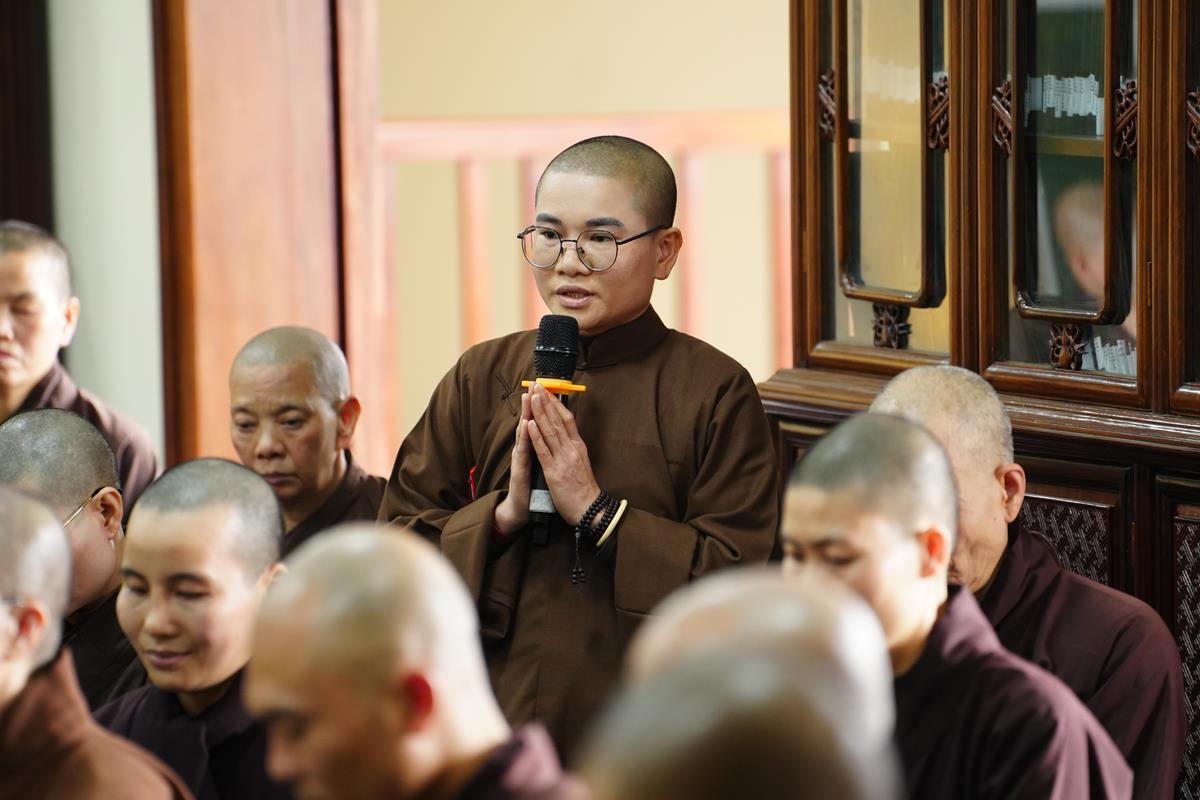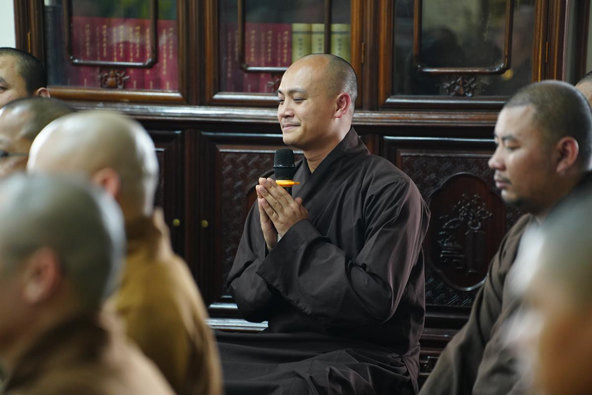 Dưới góc nhìn của Thượng tọa Giảng sư, trong bối cảnh xu thế của thời đại tri thức, thời đại học vấn, tìm kiếm thông tin, chư Tăng Ni cần phải hội nhập. Tu là phải học để hiểu, biết, để tu tập và để thay đổi nhận thức. Cái thấy ở bên ngoài là cái mưu cầu. Học chỉ là kiến thức và kiến thức cũng là học. Tăng Ni học Phật cũng là kiến thức. Nhưng kiến thức không hết được tham – sân – si. Phải chuyển “thức” thành “tuệ” để mở rộng kiến thức, nâng tầm hiểu biết và có “Bi” ở trong đó. Tuệ có bi, trí trong đạo Phật có bi. Có bi thì giảm trừ được tham – sân – si. Bi được hiểu là tình thương. Mình thương mình, thương huynh đệ, Thầy Tổ, Giáo hội, cao Tăng thánh Tăng và thương Đức Phật, thương tín thí đàn na. Mình chỉ thật sự thương Đức Phật thì tâm bồ đề mới vững chãi, không lay chuyển và tâm Phật thể nhập với chính mình. Vì thương Phật mà mình nói điều Phật nói, làm việc Phật làm và nghĩ điều Phật nghĩ. Chắn chắn khó đạt nhưng hãy cố nuôi dưỡng, thực tập để đạt điều đó. Chính những tình thương này giúp mình nâng cao được sứ mệnh, không cho phép bản thân được khiếm khuyết để không làm tổn thương những người mình thương.