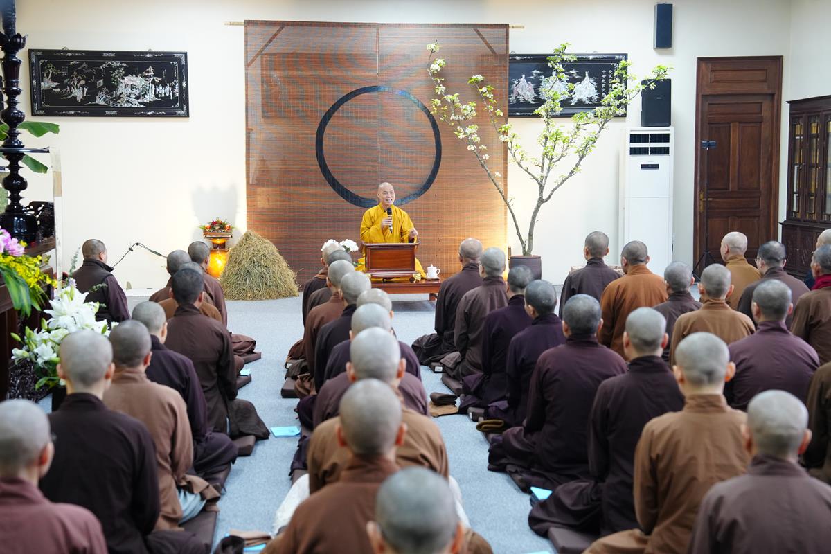 Tại đây, Thượng tọa đã nhắc lại một số khóa tu dành cho Tăng Ni đã được tổ chức tại Việt Nam. Trong đó nổi bật trong suốt 10 năm qua là khóa huân tu 10 ngày từ ngày 1.11 (ngày giỗ của Đức Đệ Nhất Pháp Chủ) tới ngày 10.11 (ngày giỗ của Đức Phật Hoàng Trần Nhân Tông) tại Tp. Hồ Chí Minh, do Đại lão Hòa thượng Thích Trí Quảng – Đức Đệ Tứ Pháp Chủ GHPGVN tổ chức. Hay khóa tu Kiết đông “Thất nhật giáo Giới” trong một tuần tại Kiên Giang và khóa huân tu vào tháng 10 năm 2024 vừa qua do Văn phòng 2 của GHPGVN tổ chức cho bộ phận văn phòng của 34 Giáo hội tỉnh, thành phố. Riêng tại thủ đô Hà Nội, đây đã là khóa tu thứ hai dành cho Tăng Ni.
