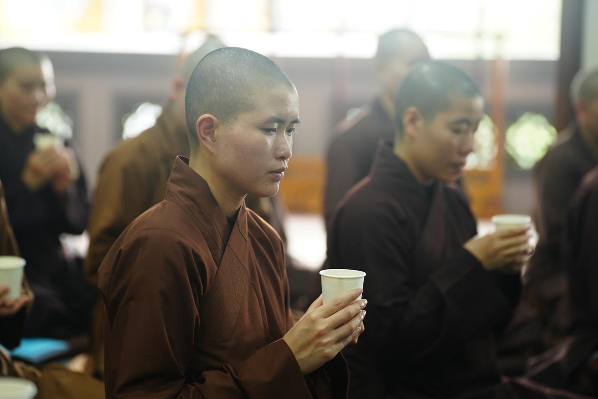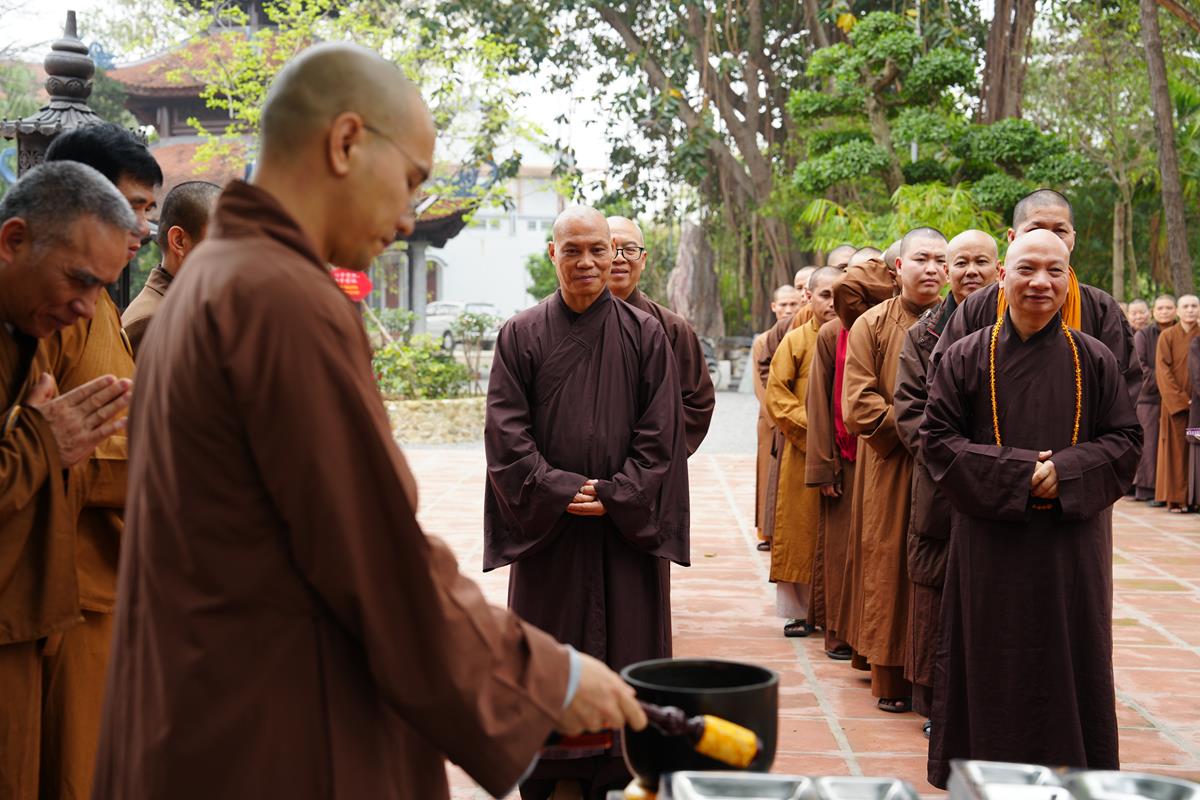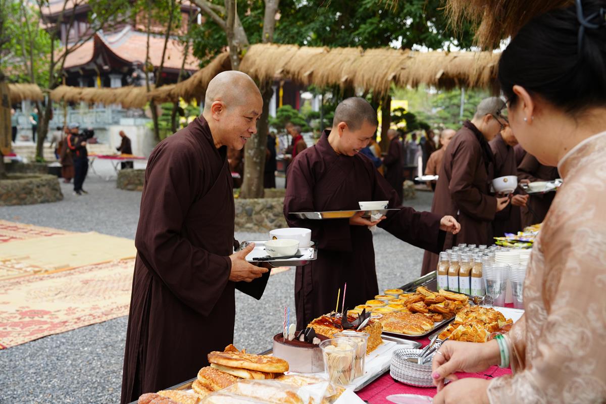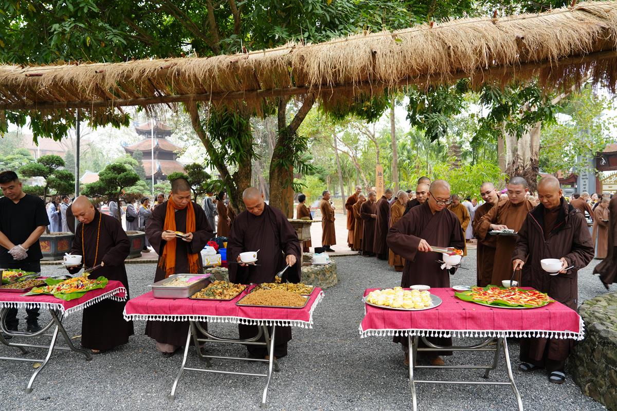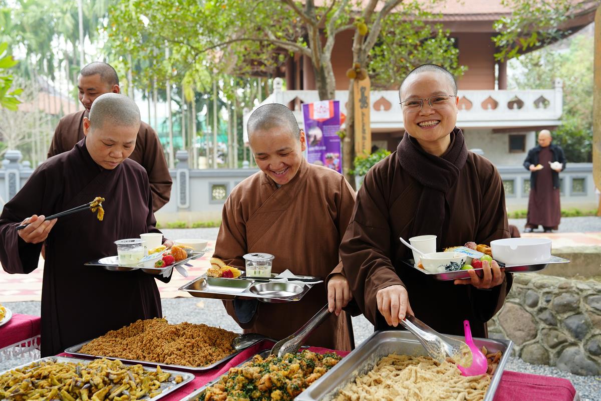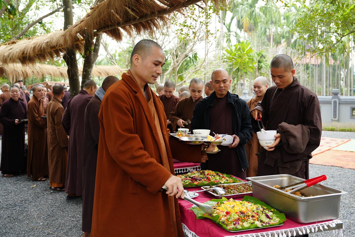 Buổi trưa, chư Tăng Ni đã dùng bữa trưa thanh tịnh tràn đầy niềm hoan hỷ, an lạc bên huynh đệ đồng tu, trong tình pháp lữ ấm áp.
