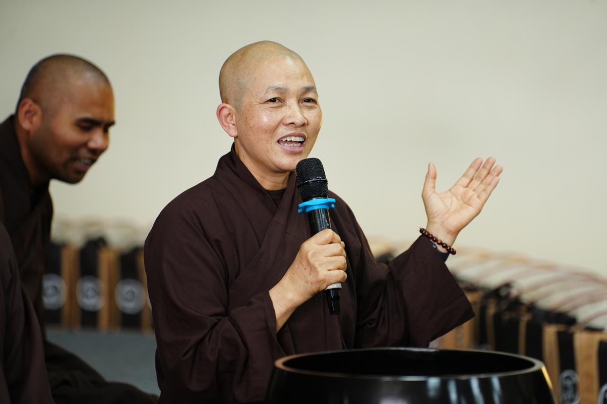 Vào buổi sáng, ngoài những giây phút an trú trong thiền hành, trang nghiêm trong những thời khóa tọa thiền, tụng kinh, niệm Phật, đại chúng cũng đã có những giờ ý nghĩa khi được lắng nghe thời pháp thoại của Thượng tọa Thích Trí Chơn – Ủy viên HĐTS, Phó Ban Hoằng pháp TW GHPGVN.
