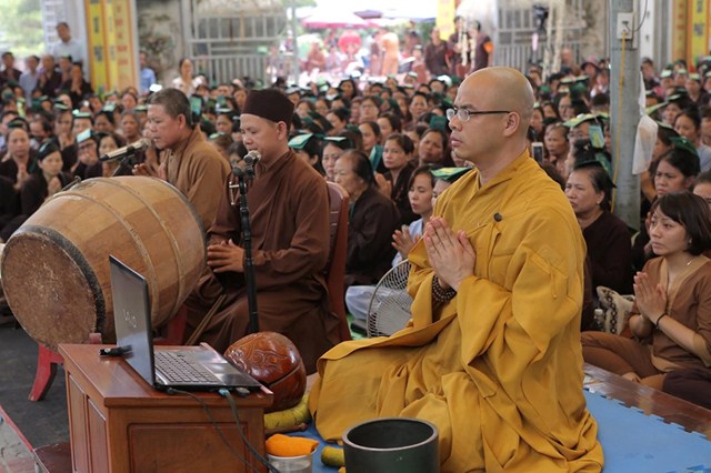 Tiếp đó, Đại đức Thích Quảng Hiếu đã làm lễ quy y Tam Bảo cho các vong linh thai nhi và toàn thể đại chúng, các bậc làm cha cha làm mẹ đã nhất tâm sám hối, tụng kinh cầu nguyện cho các oan hồn, uổng tử sớm được siêu thoát. Đồng thời thông qua thời kinh này giúp cho các ông bố, bà mẹ hiểu rõ hơn về tội lỗi của mình, để từ đó họ biết ăn năn hối lỗi, biết sám hối về những việc mình đã gây tạo ra, khiến cho các vong linh thai nhi phải chịu đau khổ và hồi hướng công đức lành đó cầu cho các vong linh sớm đầy đủ nhân duyên để được sinh về cảnh giới an lành.