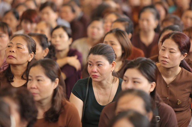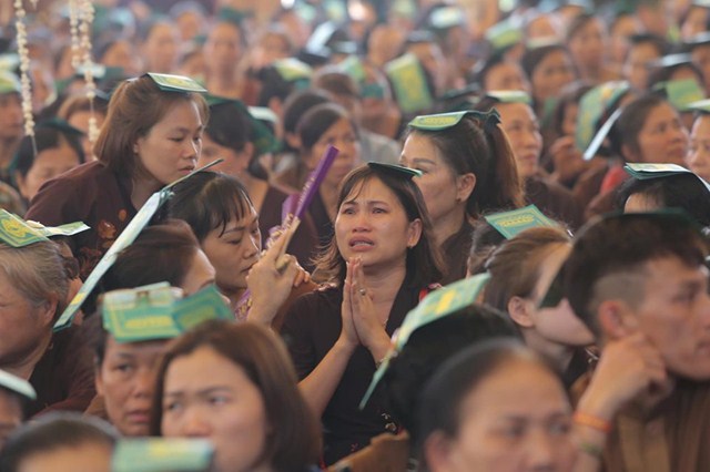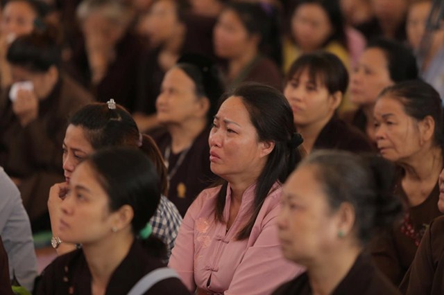 Lúc này, không khí tại Pháp hội dường như bị trùng xuống, thể hiện rõ trên khuôn mặt của hàng ngàn ông bố, bà mẹ, mỗi người một tâm trạng, một nỗi đau khác nhau. Nhìn vào khuôn mặt của họ có thể thấy trong đó sự xót xa, đau buồn của những người phụ nữ đã luống tuổi hay những thiếu nữ chỉ mới mười tám đôi mươi, có lẽ họ đã nhận ra mình có tội rất lớn vì đã giết đi những sinh mạng, những thai nhi vô tội mà sinh mạng đó không đâu xa chính là những người con của mình, là máu mủ ruột già của mình.