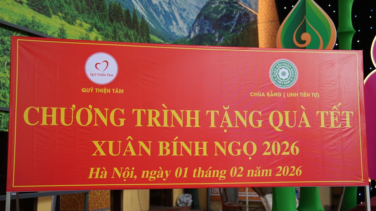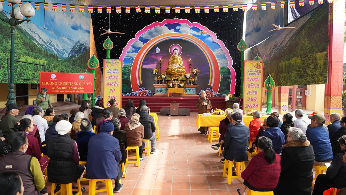 Chiều ngày 01/02/2026, trong không khí se lạnh của những ngày giáp Tết, khi mùa xuân đang khẽ gõ cửa từng nếp nhà, tại chùa Bằng – Linh Tiên Tự (phường Hoàng Liệt, TP. Hà Nội), Hòa thượng Thích Bảo Nghiêm – Phó Chủ tịch Hội đồng Trị sự GHPGVN, Trưởng Ban Hoằng pháp Trung ương, Trưởng Ban Trị sự GHPGVN TP. Hà Nội, Trụ trì chùa Bằng đã cùng Quỹ Thiện Tâm (Tập đoàn Vingroup) tổ chức trao tặng 300 phần quà Tết đến các hộ gia đình có hoàn cảnh khó khăn thuộc khu dân cư Bằng Liệt.