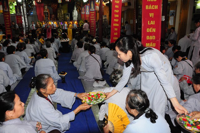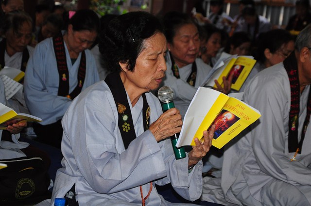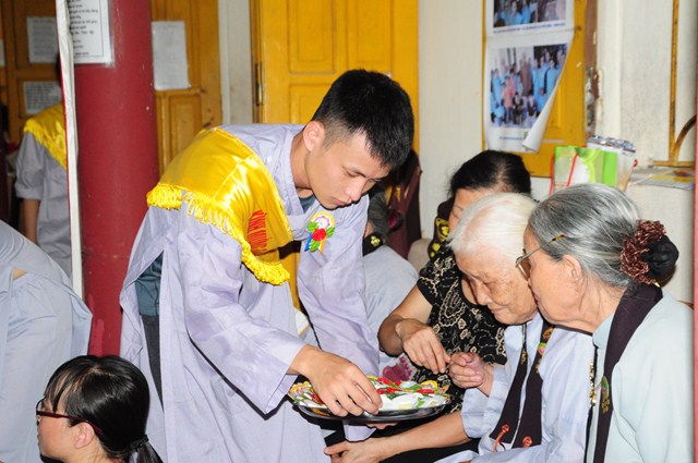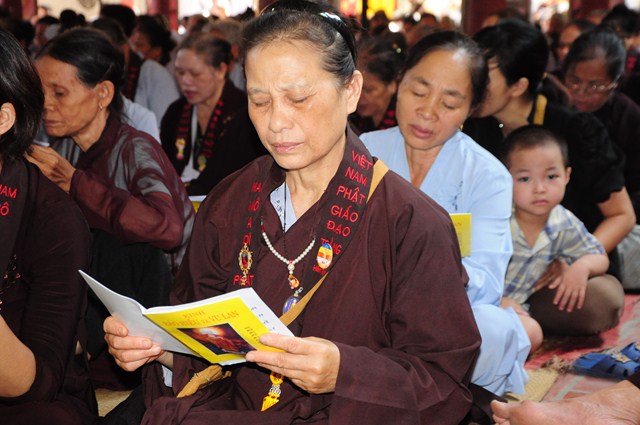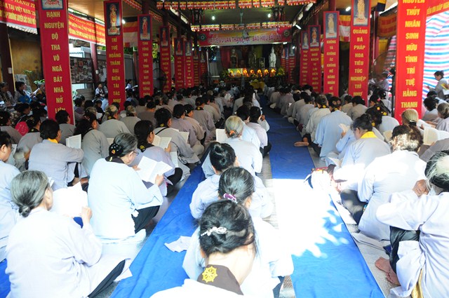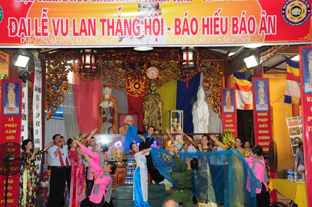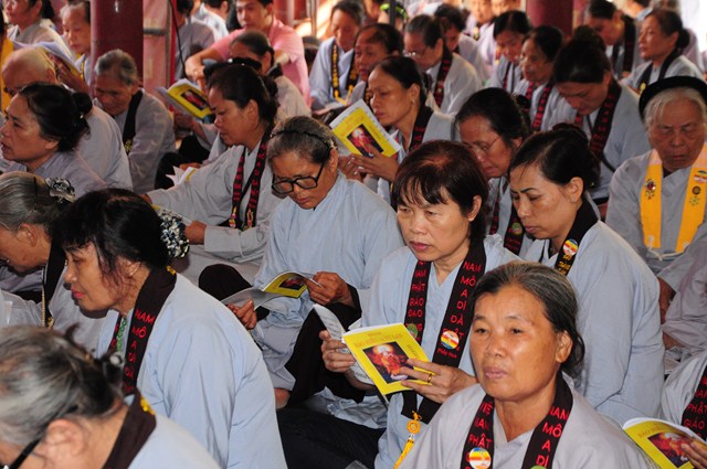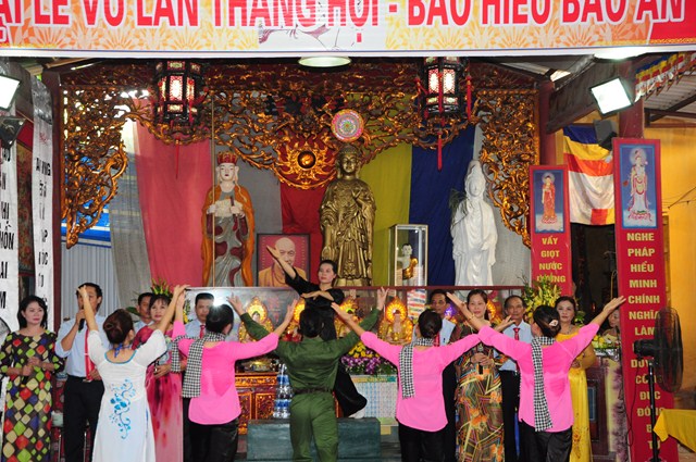 Trước khi kết thúc buổi lễ, Chư tôn đức Tăng Ni đã cùng các Phật tử tụng một thời kinh Vu Lan – Báo hiếu cầu nguyện thế giới hòa bình, hồi hướng công đức cho khắp pháp giới chúng sinh, ông bà, cha mẹ hiện tiền được an lạc, mạnh khỏe. Đồng thời hồi hướng công đức cho ông bà, cha mẹ quá vãng được sinh về cảnh giới lành.