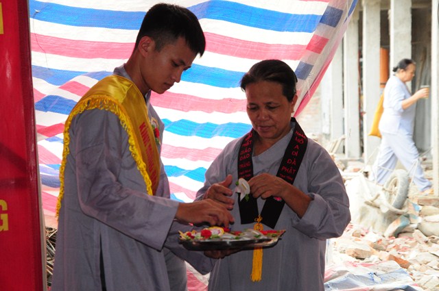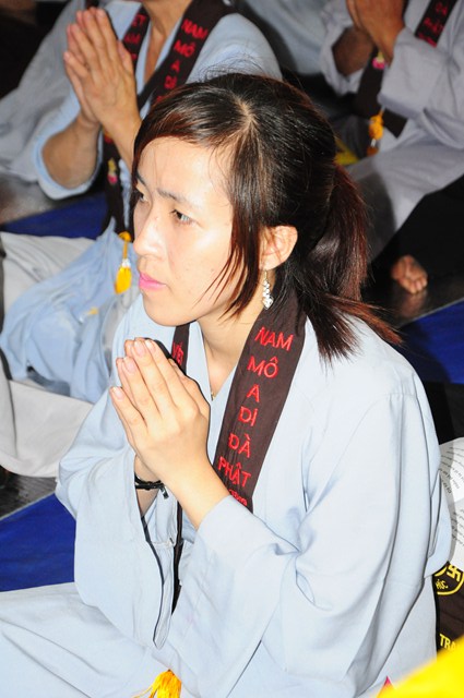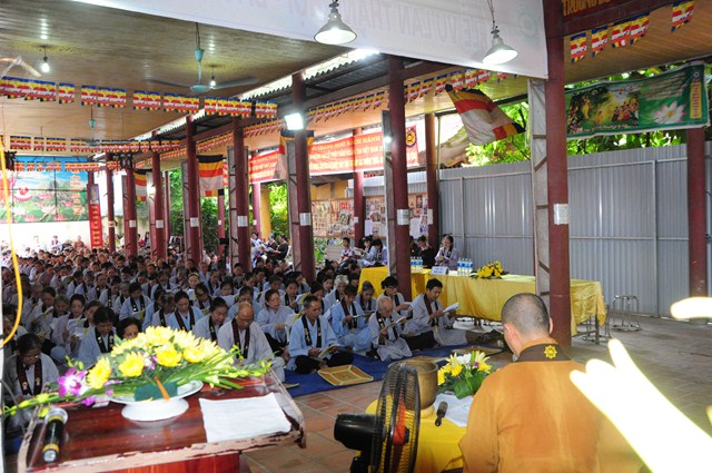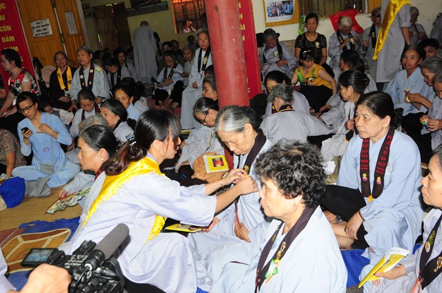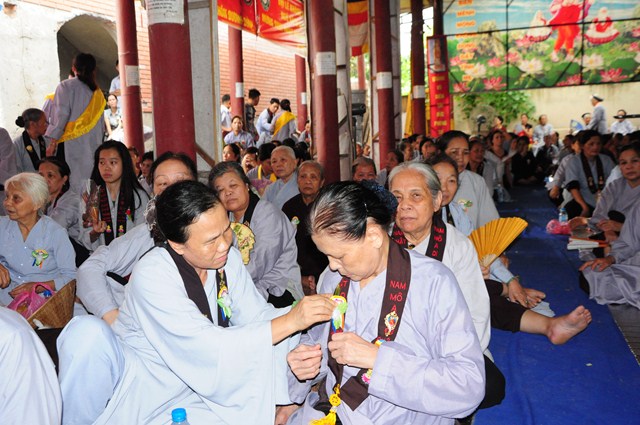 Trước khi buổi Đại lễ được chính thức bắt đầu, Đại Đức Thích Quảng Phúc đã làm lễ quy y cho một số Phật tử phát tâm quy y trong mùa Vu lan năm nay.