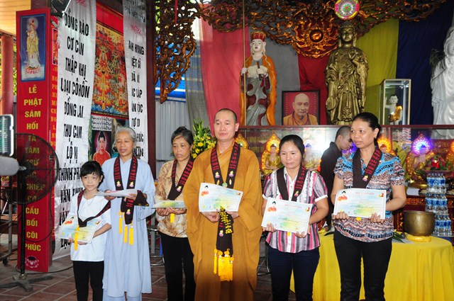 Quang lâm và chứng minh Đại lễ có sự hiện diện của ĐĐ.Thích Quảng Thiện – Phó trưởng BTS GHPGVN huyện Gia Lâm, ĐĐ. Thích Quảng Phúc – Trưởng Ban từ thiện GHPGVN huyện Gia Lâm, tru trì chùa Dương Đình ( Nguyễn Xá tự), xã Dương Xá, huyện Gia Lâm, cùng đông đảo Chư tôn Thiền đức Tăng Ni một số chùa trên địa bàn huyện Gia Lâm, Tp. Hà Nội, Chư tôn đức Tăng Ni hạ trường Bồ Đề – Hà Nội, hạ trường tỉnh Hưng Yên cùng đông đảo các Phật tử đạo tràng Tịnh Độ, Pháp Hoa Ngũ Bách Hành Thiện chùa Dương Đình, bà con Phật tử, khách thập phương gần xa.