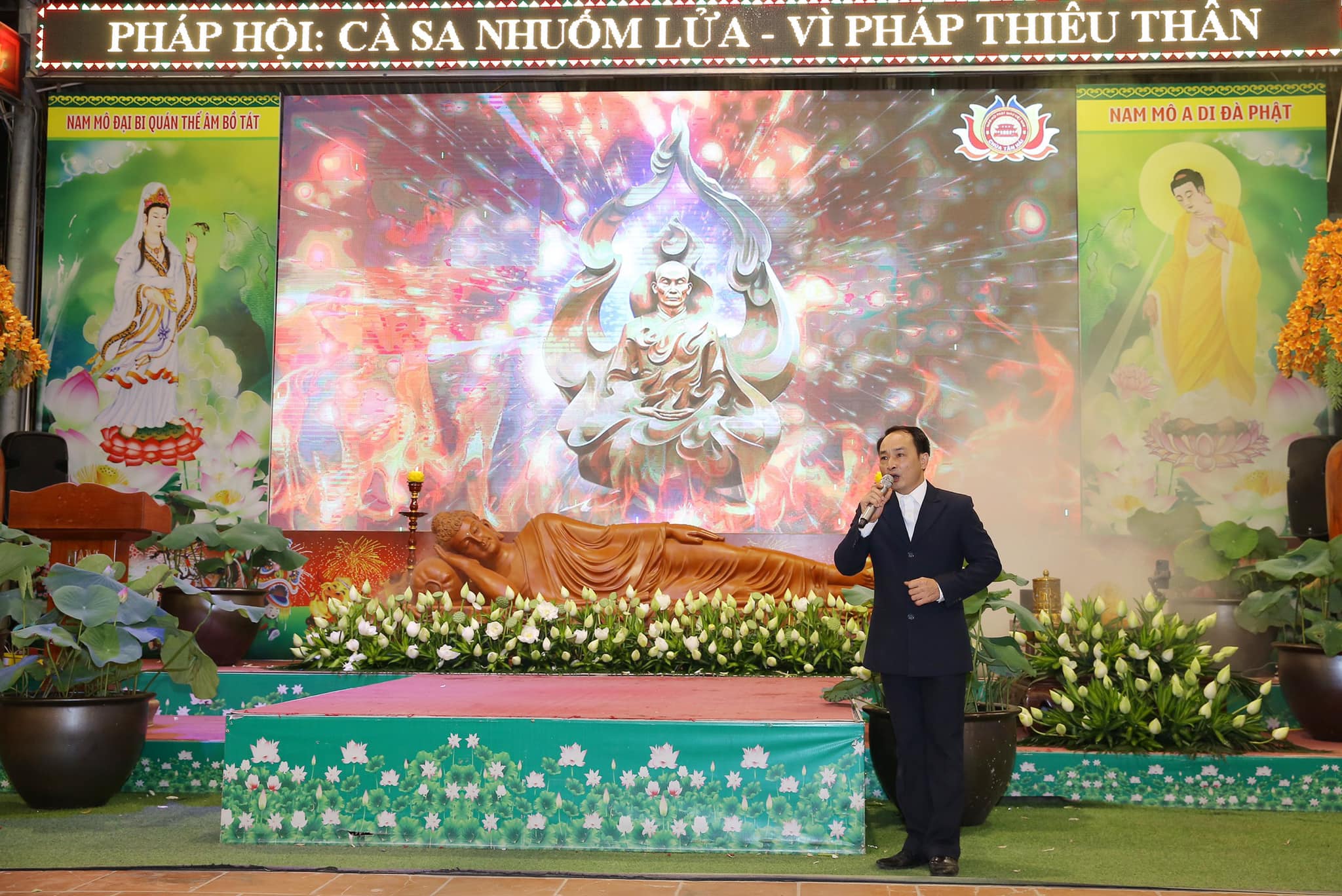Dịp này, Đại đức Thích Quảng Hiếu – Bản tự chùa Tân Hải, trưởng Ban tổ chức lễ tưởng niệm đã có một thời pháp ngắn chia sẻ cùng các Phật tử có mặt tại buổi lễ và các Phật tử đang theo dõi trên kênh truyền hình trực tuyến chùa Tân Hải về nguyên nhân vì sao Bồ Tát Thích Quảng Đức đã tự thiêu? và công hạnh của Ngài đối với Đạo Pháp, Dân tộc.
