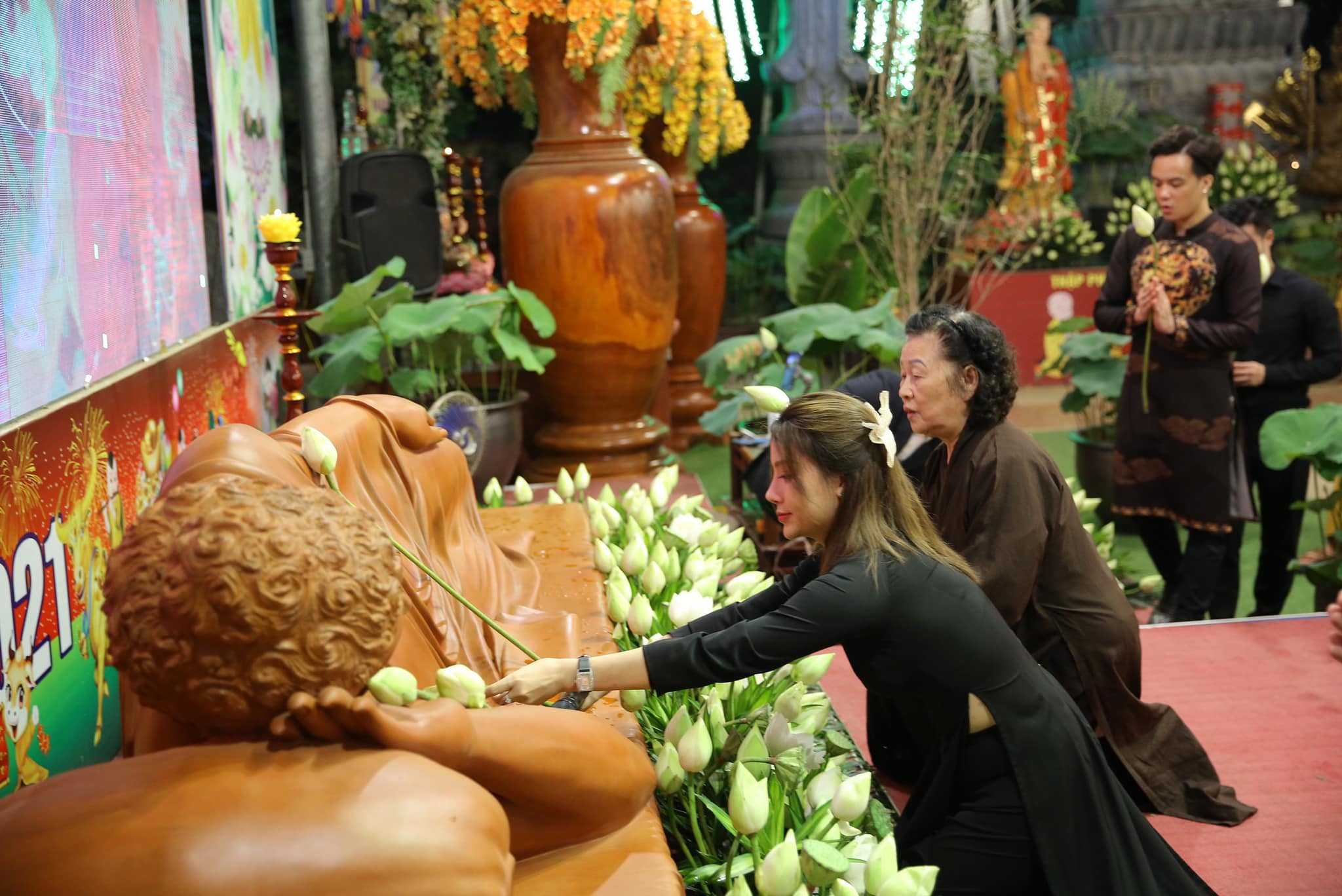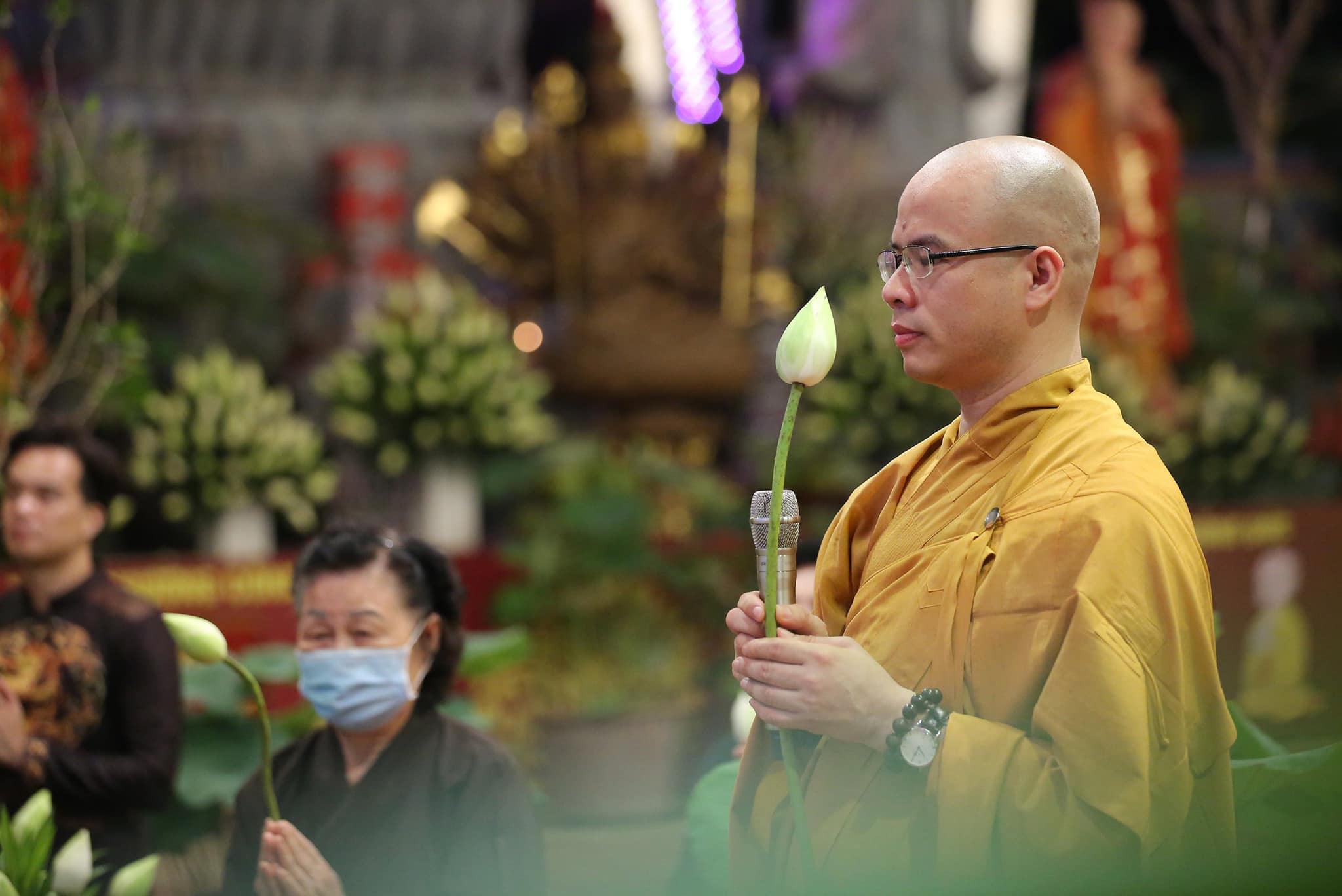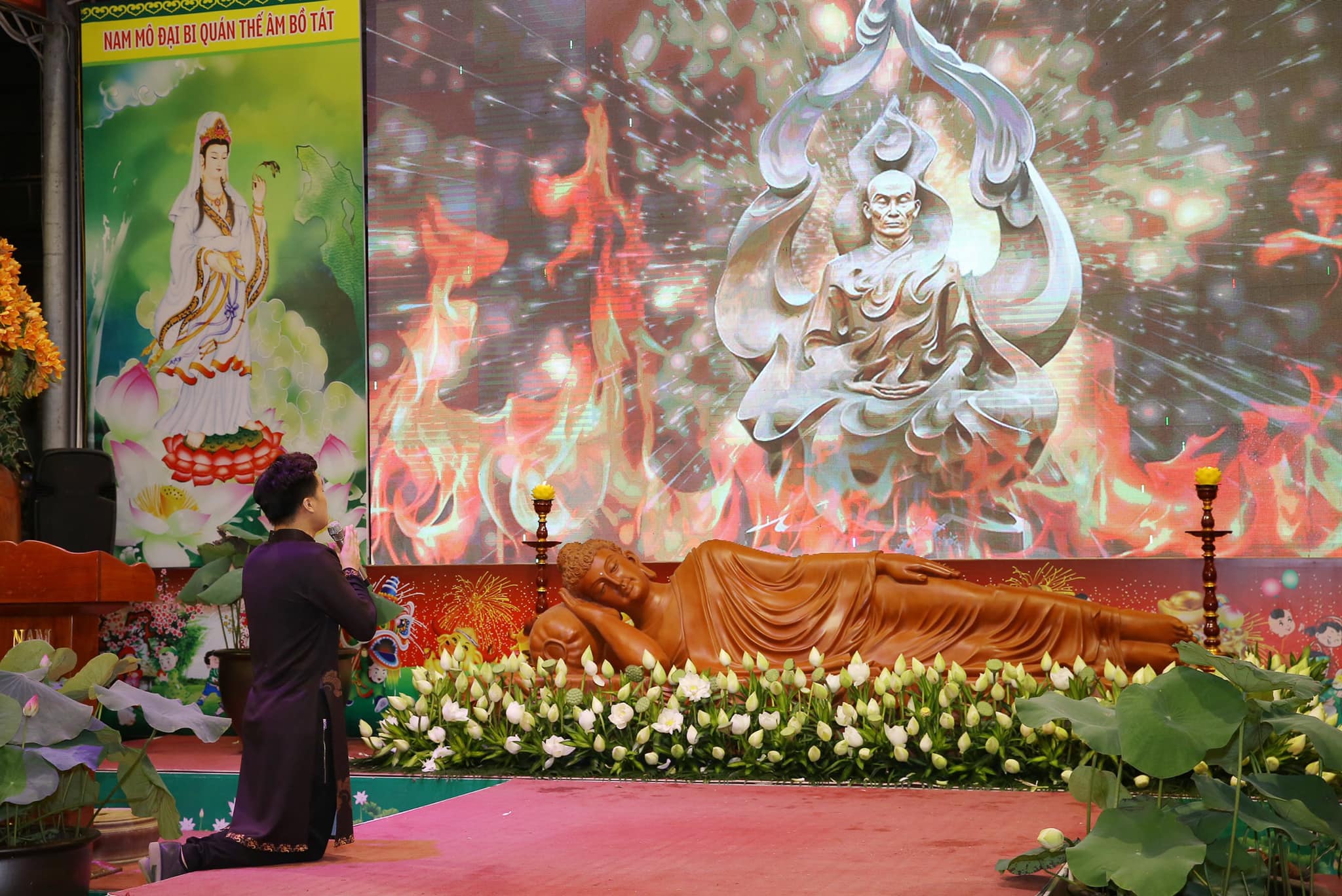 Trước khi kết thúc buổi lễ, Đại đức Thích Quảng Hiếu cùng các ca sỹ, văn nghệ sỹ Ban văn nghệ chùa Tân Hải và đại diện Phật tử dâng những bông sen trắng tinh khiết nhất kính dâng lên Ngài, cầu nguyện Ngài gia hộ cho chúng sinh an lạc, Phật Pháp trường tồn.