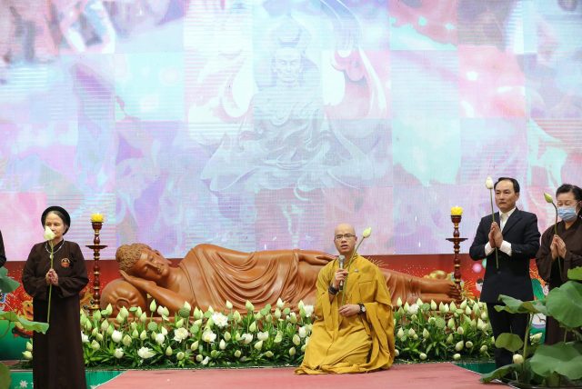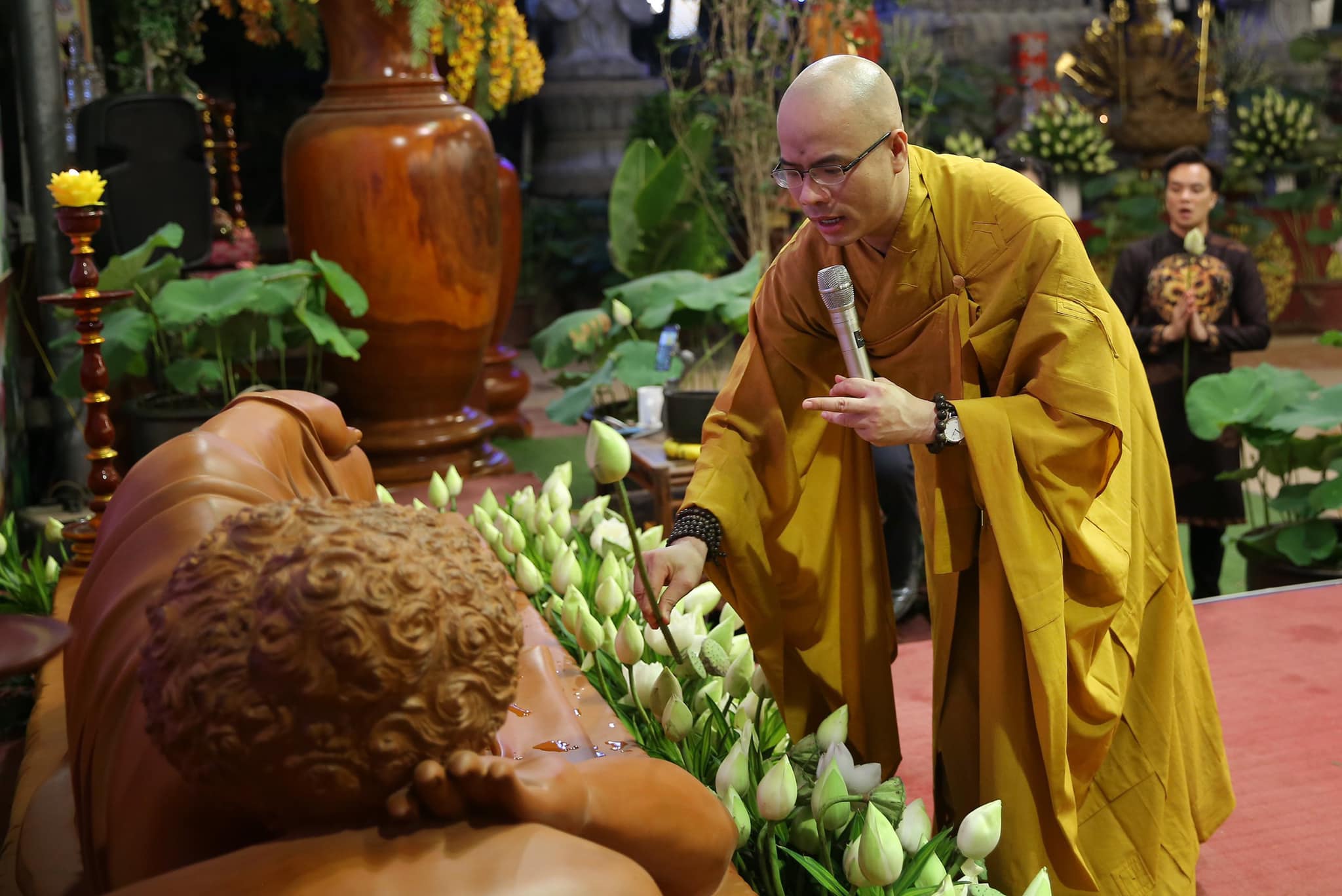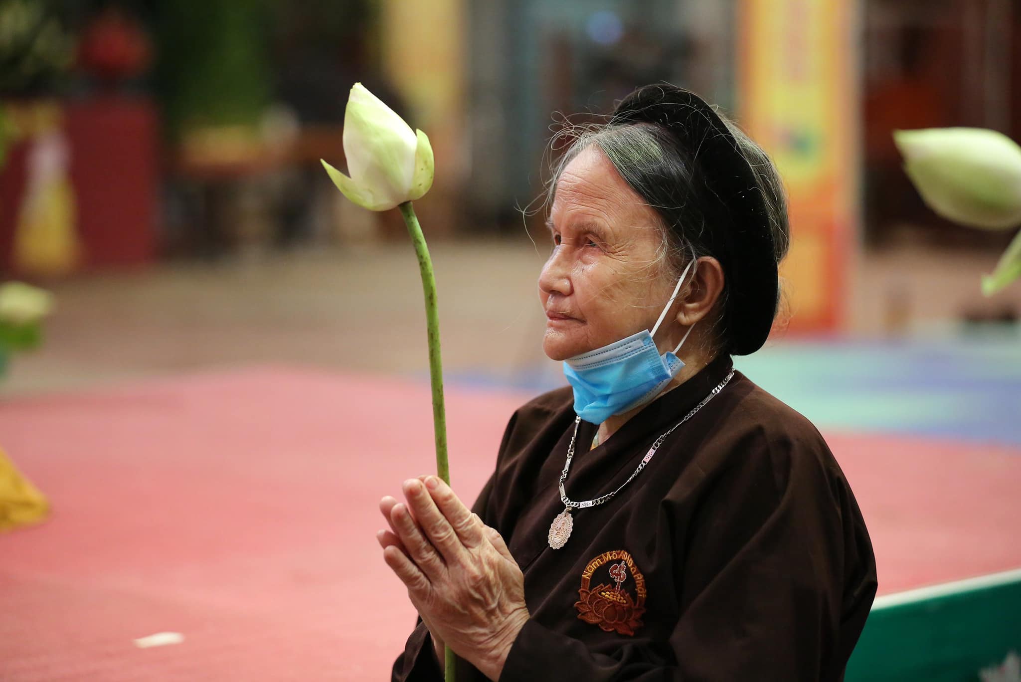 Trước khi kết thúc buổi lễ, Đại đức Thích Quảng Hiếu cùng các ca sỹ, văn nghệ sỹ Ban văn nghệ chùa Tân Hải và đại diện Phật tử dâng những bông sen trắng tinh khiết nhất kính dâng lên Ngài, cầu nguyện Ngài gia hộ cho chúng sinh an lạc, Phật Pháp trường tồn.