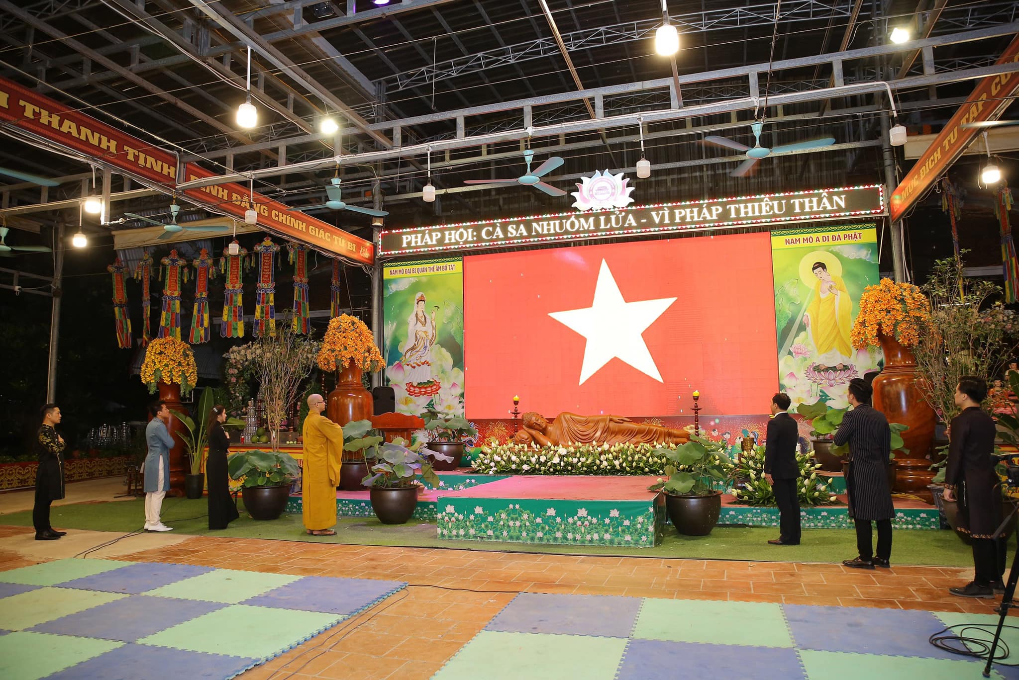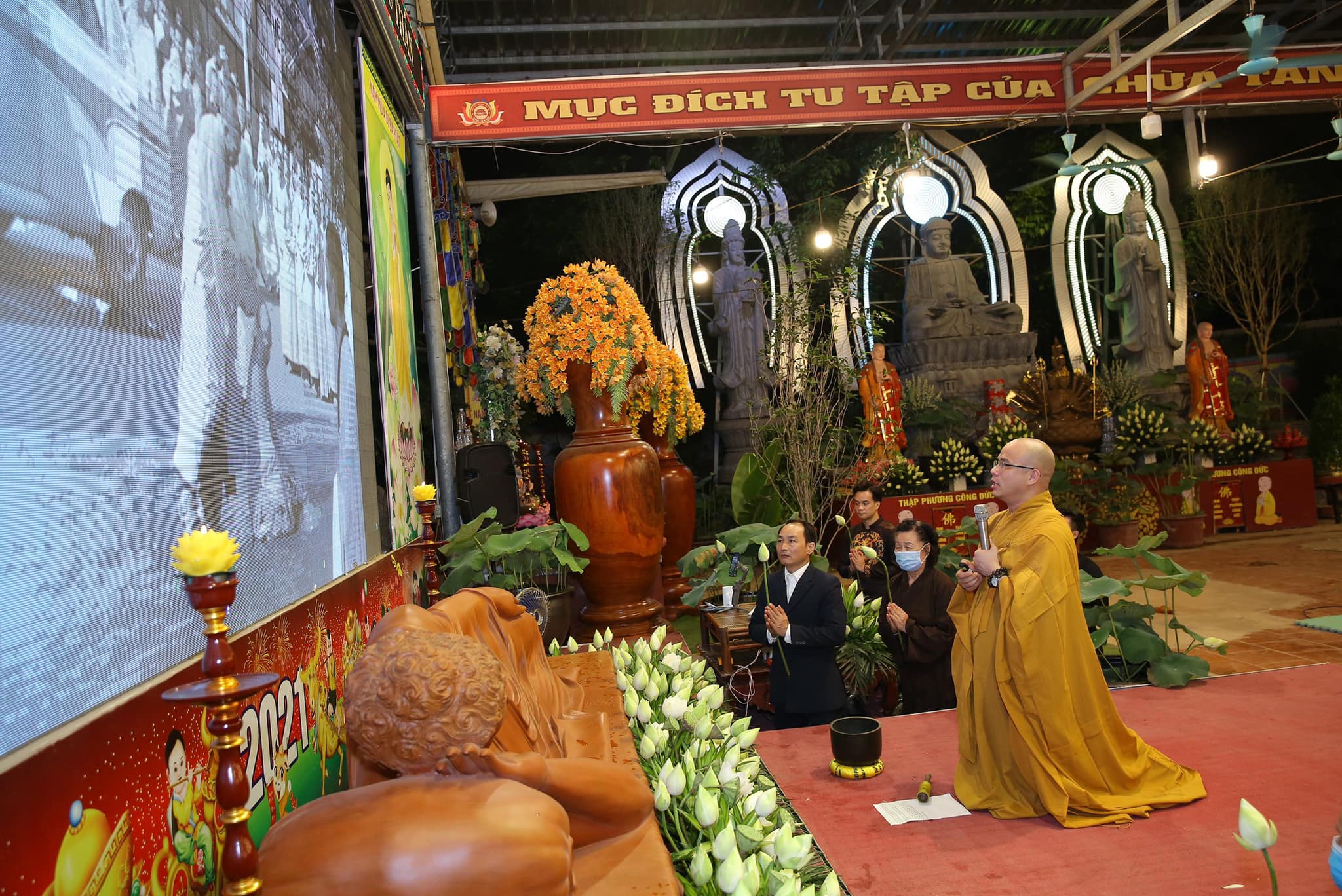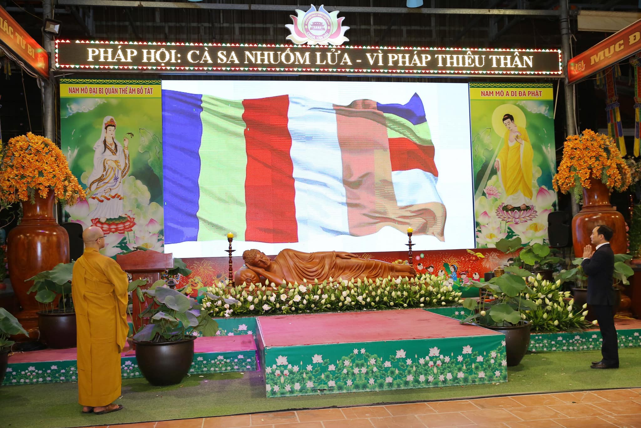 Giây phút linh thiêng nhất, cũng là linh hồn của buổi lễ đã tới, khi Đại đức Thích Quảng Hiếu cùng đại diện Phật tử có mặt tại chùa Tân Hải, các Phật tử đang theo dõi trực tuyến cùng hướng về tôn tượng của Bồ Tát Thích Quảng Đức được trình chiếu trên màn hình lớn, dâng nén tâm hương thành kính và dâng văn tưởng niệm nhân kỷ niệm 58 năm ngày Bồ Tát Thích Quảng Đức vị Pháp thiêu thân và chư Thánh tử đạo trong Pháp nạn năm 1963.