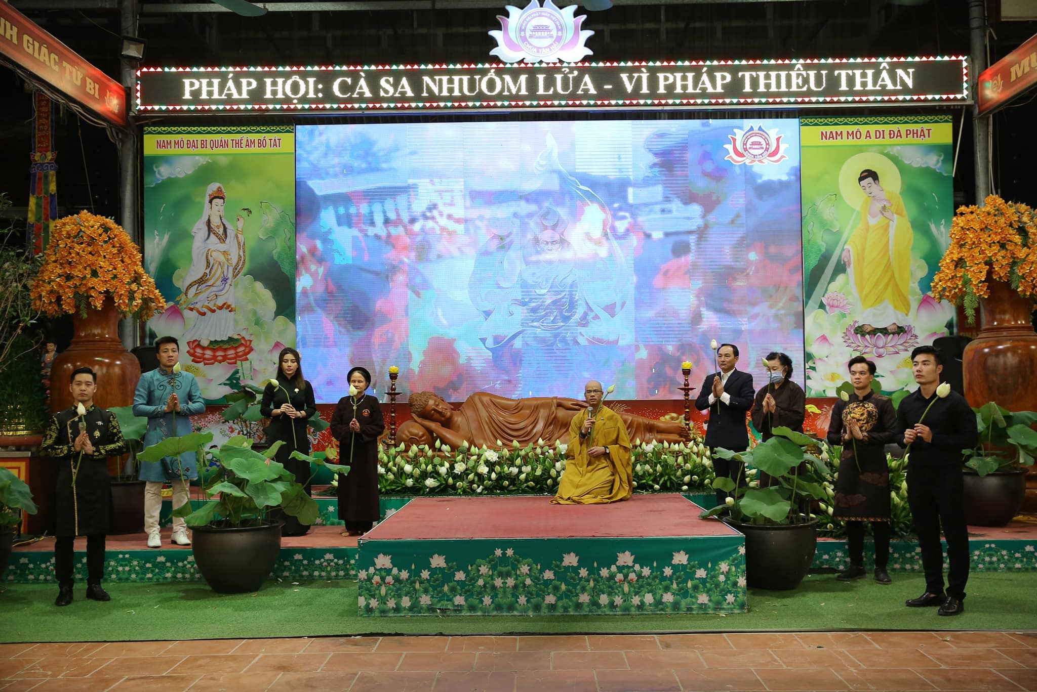 Trước khi chính thức diễn ra buổi lễ tưởng niệm 58 năm Bồ Tát Thích Quảng Đức vị pháp thiêu thân ( 11/06/1963 – 11/06/2021) và Chư Thánh tử đạo, các văn nghệ sỹ, ca sỹ Ban văn nghệ chùa Tân Hải đã thành kính dâng lời ca tiếng hát cúng dàng lên mười phương Chư Phật, cũng như để tưởng nhớ tới công ơn của Bồ Tát Thích Quảng Đức và chư Thánh tử đạo đã hy sinh cho Đạo pháp, Dân tộc.