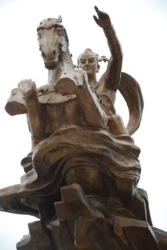 Tượng đặt tại đỉnh non thiêng Đá Chồng thuộc xã Phù Linh (Sóc Sơn-Hà Nội), nơi tương truyền là sau khi nhổ tre ngà đánh tan giặc Ân xâm lược, Thánh Gióng đã cởi áo giáp cùng ngựa thần bay về trời, thăng thiên hóa thánh và đã trở thành một trong tứ bất tử của Việt Nam.