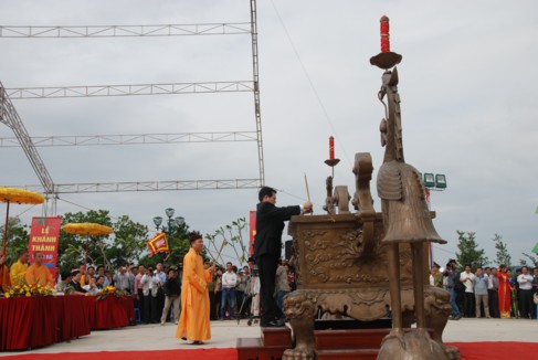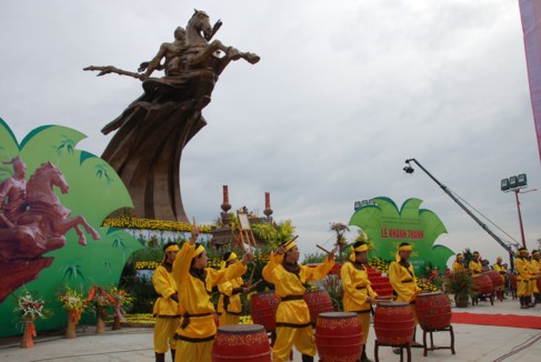 TT Thích Thanh Quyết cho biết dự án tượng đài Thánh Gióng được UBND TP Hà Nội phê duyệt và giao cho Giáo hội Phật giáo Việt Nam làm chủ đầu tư từ năm 2005. Sau khi xem xét nhiều mẫu phác thảo, tới năm 2008, mẫu phác thảo của nhà điêu khắc Nguyễn Kim Xuân đã được chọn để xây dựng tượng đài Thánh Gióng. Đúng 9 giờ 9 phút ngày 9-9-2009, giọt đồng đầu tiên của tượng Thánh Gióng đã được rót đúc và sau đúng 14 tháng thi công ròng rã, công trình thể hiện sức mạnh và tình đoàn kết của toàn dân tộc đã được cắt băng khánh thành.