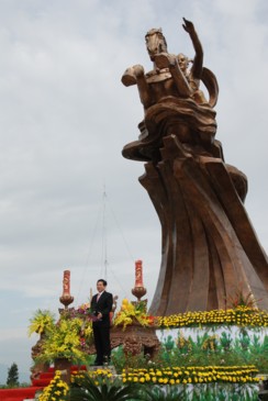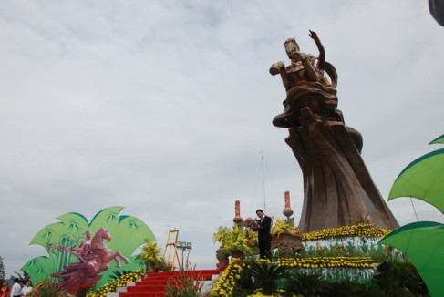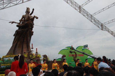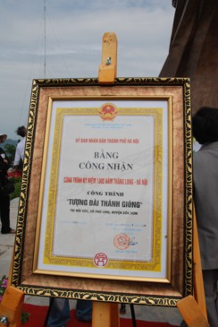 Tại lễ khánh thành, trồng cây lưu niệm, Chủ tịch nước Nguyễn Minh Triết đã có bài phát biểu đầy xúc động. Trong đó, Chủ tịch nước nhấn mạnh, đây là một công trình văn hóa quan trọng nhằm chào mừng đại lễ 1.000 năm Thăng Long-Hà Nội. Ý nghĩa của việc xây dựng tượng đài Thánh Gióng là để nhắc nhở tất cả chúng ta về lòng yêu nước nồng nàn, khi có giặc thì không phân biệt già trẻ, gái trai… tất cả sẽ cùng đánh giặc. Chủ tịch nước khẳng định, sức mạnh phi thường của Thánh Gióng không phải là một huyền thoại mà chính là sức mạnh của hồn thiêng sông núi, sức mạnh của cả dân tộc Việt Nam, của ý chí quật cường, của tinh thần không có gì quý hơn độc lập tự do, đã hội tụ vào tinh thần Thánh Gióng. Cũng nhờ chính sức mạnh này đã đưa con thuyền cách mạng Việt Nam vượt qua sóng to gió lớn, giành thắng lợi này tới thắng lợi khác, cập bến vinh quang. Chúng ta tự hào về sức mạnh của khối đại đoàn kết toàn dân tộc và phải nuôi dưỡng mãi sức mạnh này.