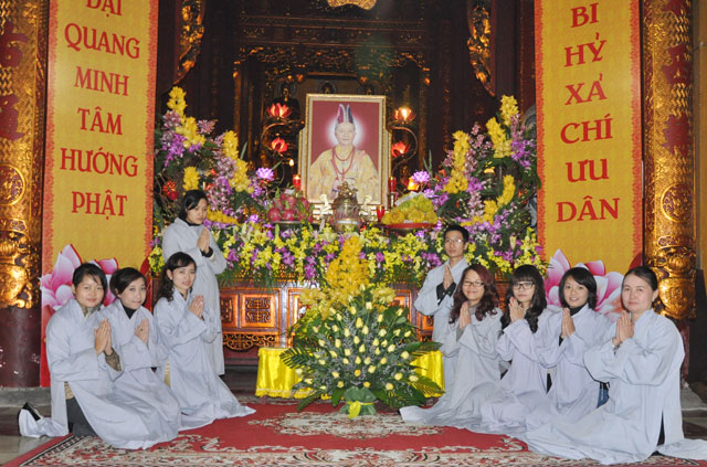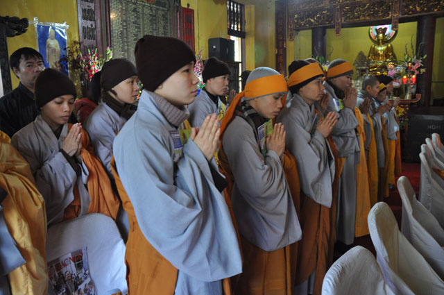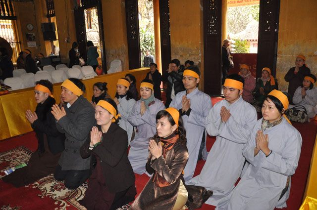 Buổi lễ kết thúc sau nghi lễ dâng hương, tụng kinh, niệm Phật trong không khí trang nghiêm, xúc động.