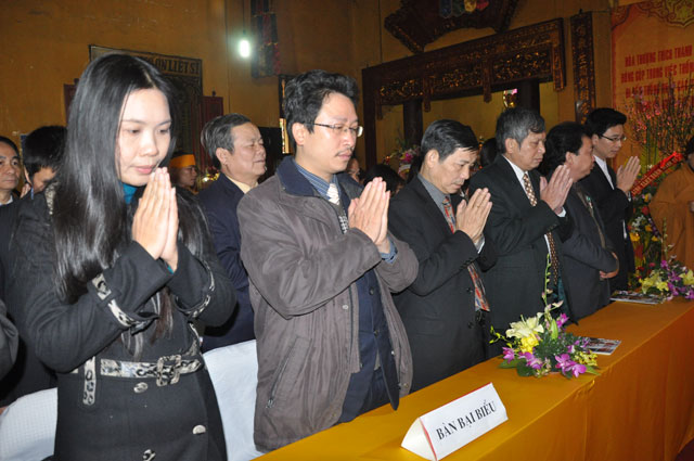 Buổi lễ có sự chứng minh tham dự của Đức đại lão Hòa thượng Thích Phổ Tuệ – Pháp chủ GHPGVN, HT Thích Thanh Sam – Phó pháp chủ GHPGVN cùng chư tôn đức Hòa thượng Phó chủ HĐTS GHPGVN: HT Thích Thanh Nhiễu – Phó chủ tịch TT HĐTS GHPGVN, HT.Thích Thiện Nhơn , HT. Thích Trí Quảng; HT.Thích Giác Toàn; HT .Thích Bảo Nghiêm,HT Thích Quảng Tùng; HT. Thích Gia Quang cùng chư Tôn đức Tăng Ni HĐTS GHPGVN, chư tôn đức BTS các tỉnh thành Phật giáo Phía Bắc.