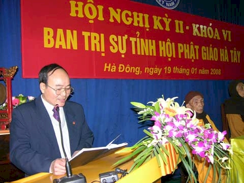 Thay mặt chính quyền Tỉnh, ông Ngô Tiến Dụng – Phó chủ tịch UBMTTQ Tỉnh phát biểu hoan nghênh và đánh giáo cao thành tựu công tác Phật sự Tỉnh hội Phật giáo Hà Tây nhiệm kỳ qua.