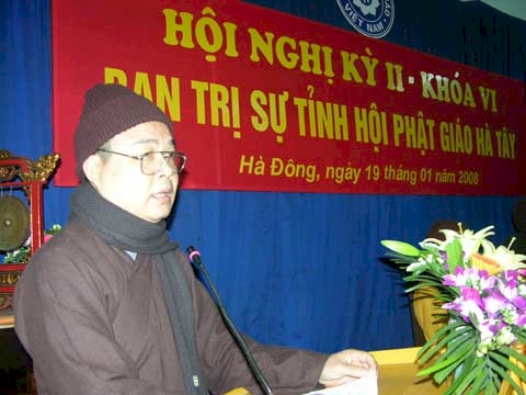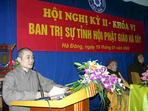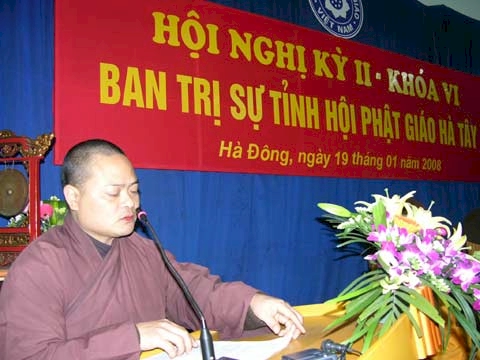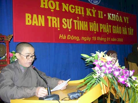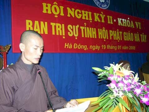ĐĐ Thích Minh Tuấn – Phó thư ký kiêm chánh Văn phòng đọc báo cáo tổng kết công tác Phật sự năm 2007 và chương trình công tác Phật sự năm 2008.