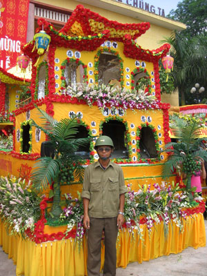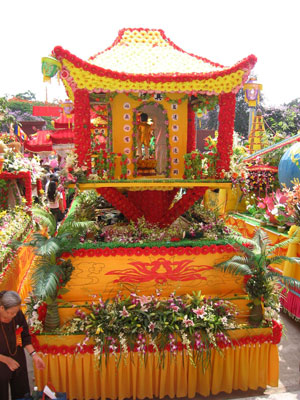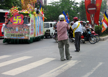 Người dân địa phương đổ ra đường xem xe hoa Phật đản
