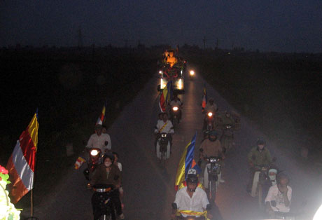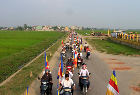Phật tử và nhân dân địa phương diễu hành xe máy mừng Phật đản