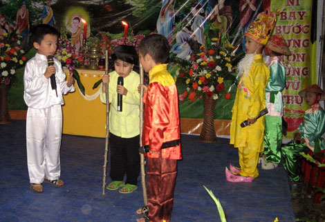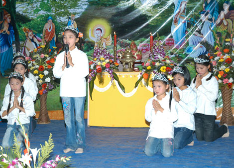 Các bé thiếu nhi biểu diễn hoạt cảnh mừng Phật đản