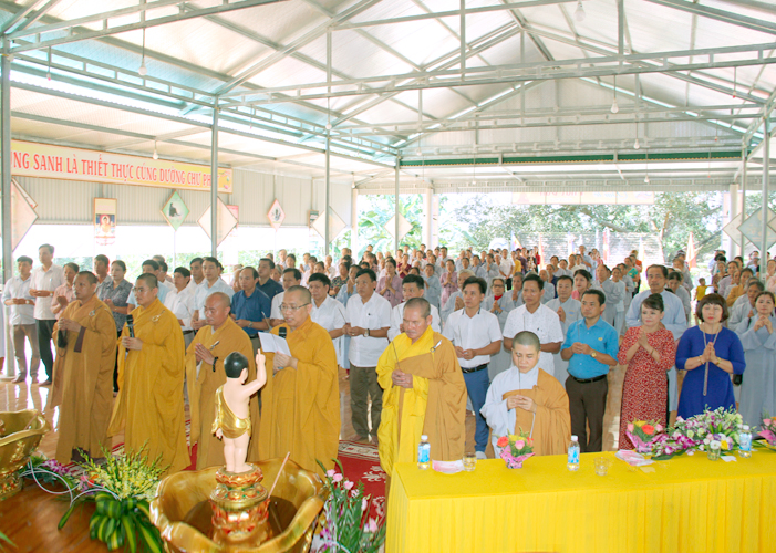 Cuối buổi lễ, Chư Tôn Đức Tăng Ni niệm hương bạch Phật, tụng kinh khánh đản, cùng quý đại biểu, Phật tử làm lễ tắm Phật và cầu nguyện cho đất nước hòa bình, nhân dân an lạc.