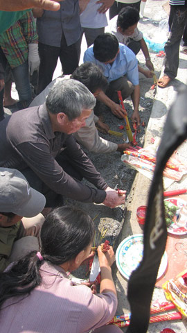 10 giờ, người nhà của nạn nhân đã có mặt tại khu vực cầu Rong để làm lễ cầu siêu cho các nạn nhân. Hàng trăm người dân cũng đã đổ dồn về đây để thắp cho các nạn nhân xấu số một nén nhang, cầu cho linh hồn họ siêu thoát.