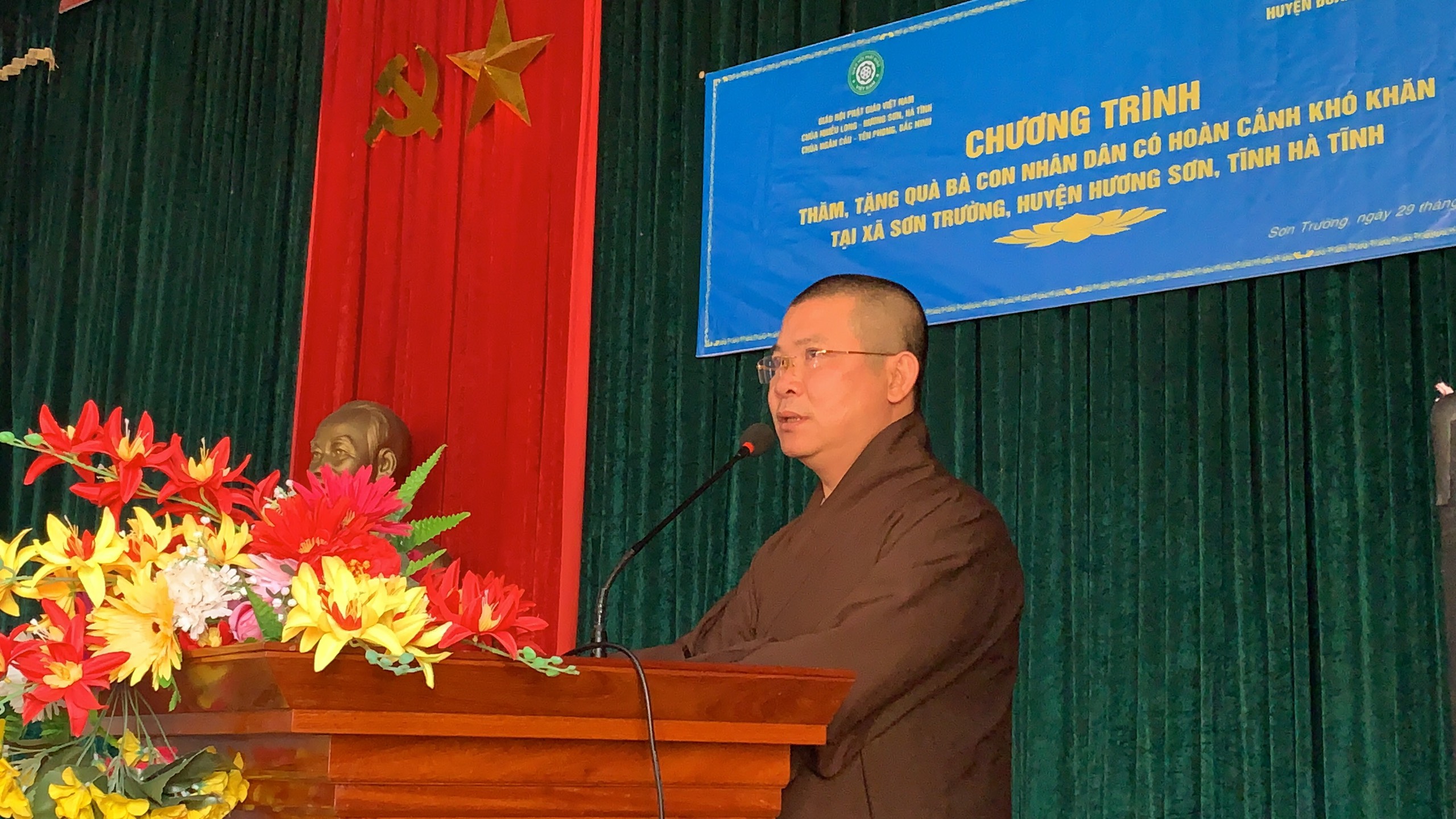 Thay mặt cho Ban tổ chức chương trình, Đại đức trưởng BTS GHPGVN huyện Hương Sơn đã gửi cảm ơn tới các cấp chính quyền địa phương, xã Sơn Trường đã tạo mọi điều kiện giúp đỡ BTS GHPGVN huyện Hương Sơn, cũng như chùa Ngân Cầu để có thể gửi đến tận tay bà con những phần quà đầy ý nghĩa nhân dịp Phật đản.