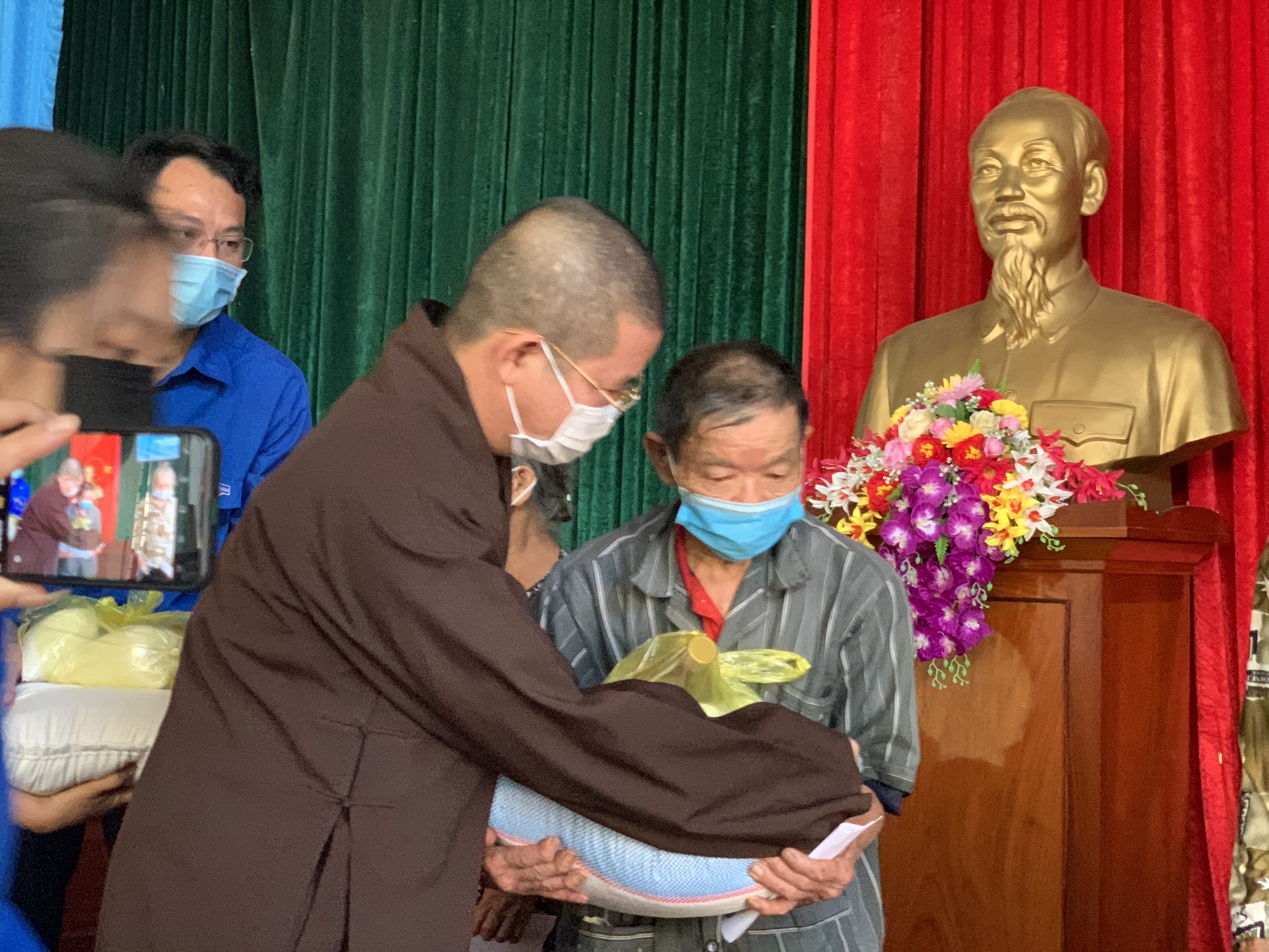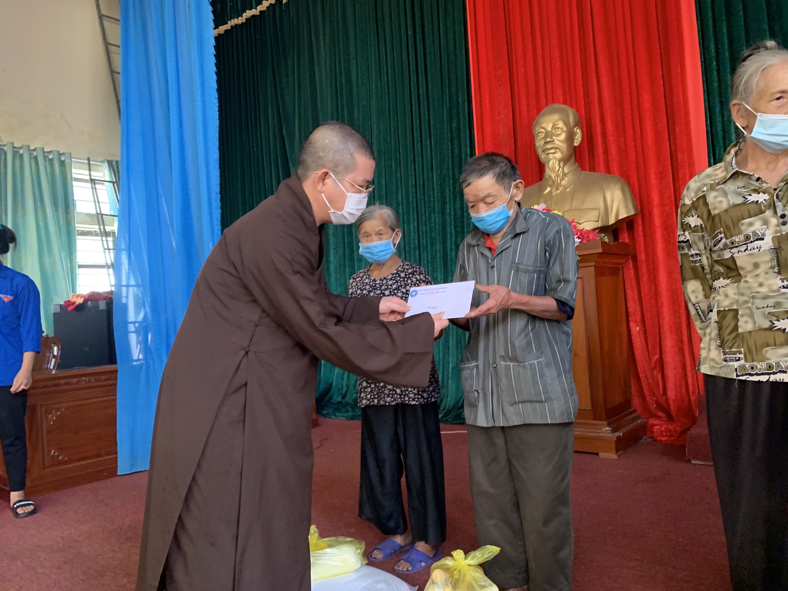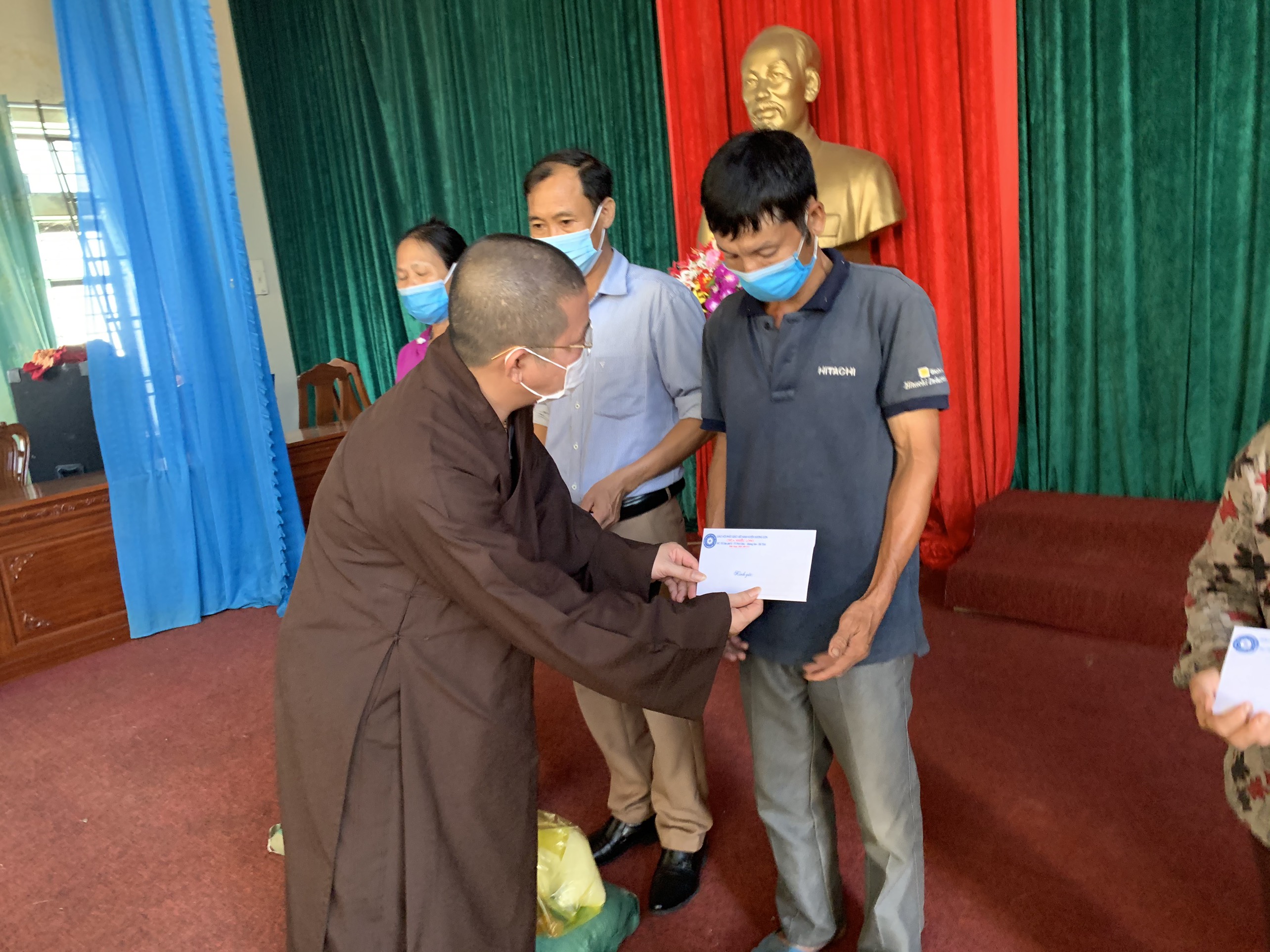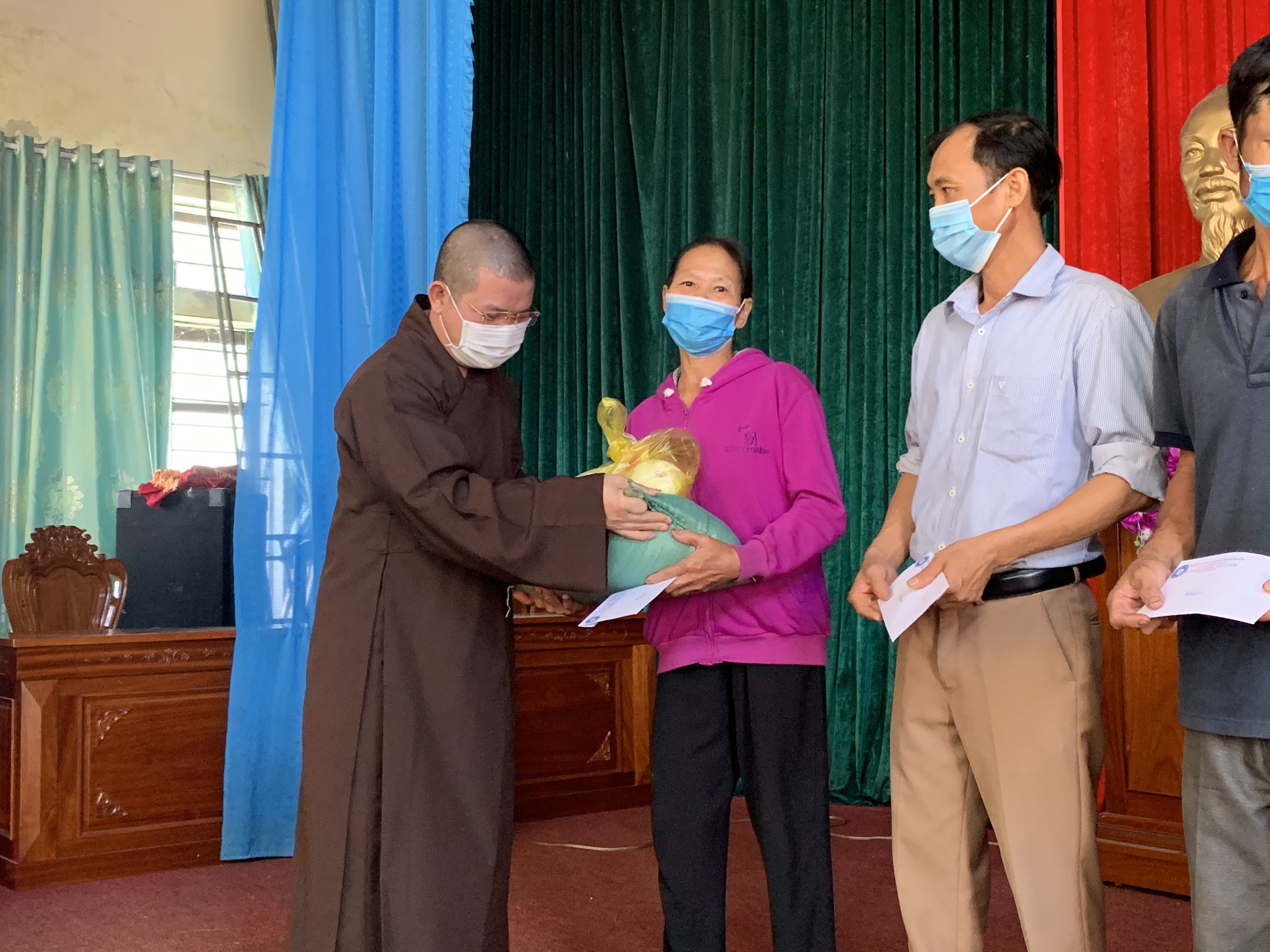 Dịp này, đoàn đã trao 100 phần quà, mỗi phần quà trị giá 300 ngàn đồng, bao gồm 10kg gạo, 1kg đường kính, 1 lít dầu ăn và 1 phong bì tiền mặt trị giá 100 ngàn đồng, tổng giá trị 100 phần quà là 30 triệu đồng. Những món quà này tuy nhỏ nhưng đó là tấm lòng của những người con Phật gửi tới bà con có hoàn cảnh khó khăn nơi đây, mong bà con mạnh khỏe, dịch bệnh sớm được tiêu trừ để bà con vơi bớt khó khăn, có thể trở lại cuộc sống bình thường.