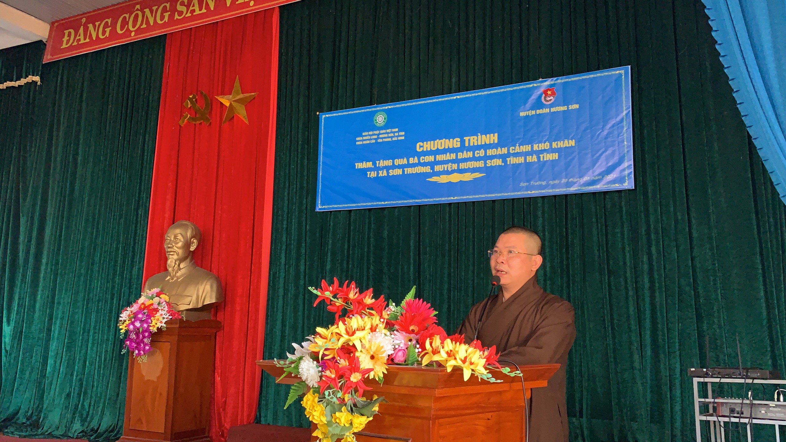 Đại đức Thích Tâm Hương – Trưởng BTS GHPGVN huyện Hương Sơn phát biểu tại buổi trao quà nhân dịp Phật đản