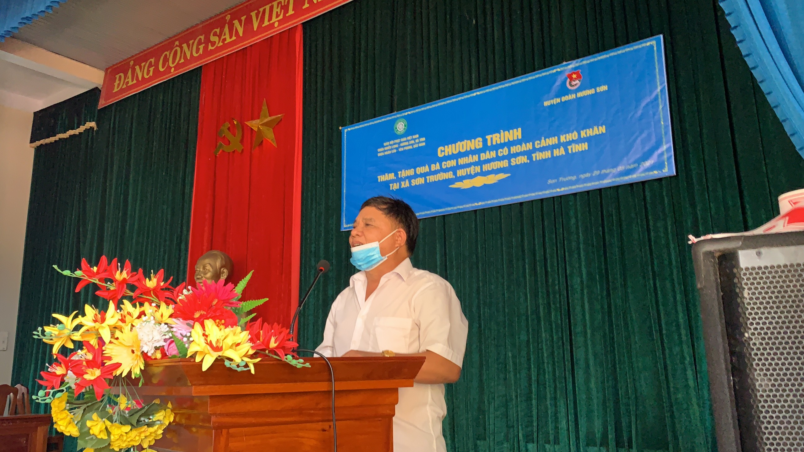 Đai diện chính quyền xã Sơn Trường, huyện đoàn Hương Sơn cũng gửi lời tri ân tới BTS GHPGVN huyện Hương Sơn, cá nhân Đại đức Thích Tâm Phương, Sư cô Thích Tịnh Thực, quỹ hỗ trợ nhà Khăn Quàng Đỏ và các Phật tử, các nhà hảo tâm, các mạnh thường quân đã có những phần quà ý nghĩa, thiết thực gửi tới bà con nhân dịp Phật đản và mong rằng trong thời gian tới sẽ tiếp tục đón nhận sự quan tâm giúp đỡ của chư tôn đức Tăng Ni và các nhà hảo tâm.
