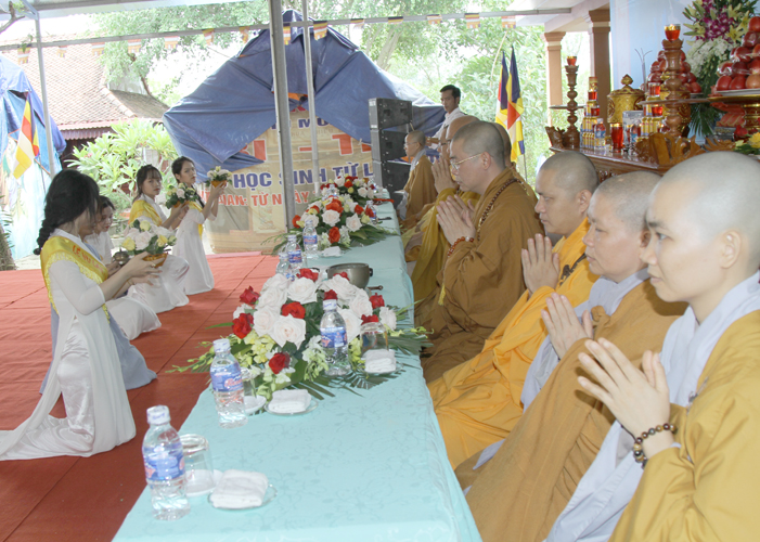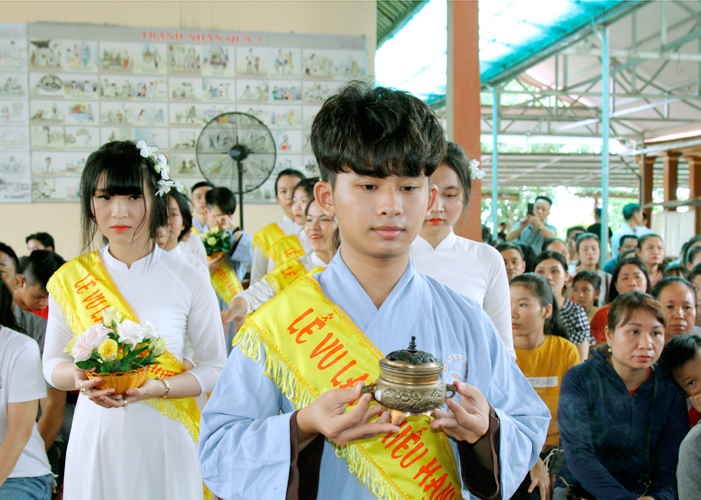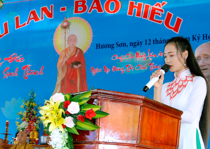 Vào buổi lễ là các tiết mục văn nghệ của các ca sĩ nghệ sĩ và các Em thanh thiếu niên phật Tử của chùa đã dâng lên lời ca tiếng hát dâng lên cúng dường Chư Phật ,tiếp đến Đại Đức Thích Tâm Phương đã lên phát biểu và khai mạc buổi lễ trong không khí lắng đọng các Em đã dâng hoa cúng dường và đọc lời cảm niệm công ơn Cha Mẹ trong tiếng thổn thức của hàng trăm người tham dự , trong buổi lễ không thể thiếu được nghi thức bông hồng cài áo thể hiện lòng hiếu kính và tri ân tới Cha Mẹ .