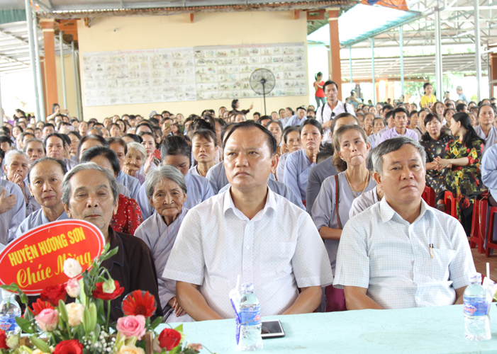 Tham dự và chứng minh cho Đại lễ có.Đại đức Thích Hạnh Nhẫn – Phó Trưởng ban Trị Sự kiêm Trưởng ban Hoằng Pháp GHPGVN Tỉnh. Đại đức Thích Chánh Thành – Ủy viên thường trực – Trưởng ban văn hóa GHPGVN tỉnh; Đ Đ Thích Quãng Nguyên trưởng ban kinh tế , trưởng ban trì sự phật giáo thành phố Hà Tỉnh .Đại đức Thích Tâm Phương – Ủy viên thường trực – Trưởng ban Nghi Lễ GHPGVN tỉnh, Trưởng ban trị sự GHPGVN huyện Hương Sơn – Trưởng ban tổ chức Đại Lễ VU LAN PL.2563- DL 2019 của Phật giáo huyện Hương Sơn.. Đại đức Thích Tánh Đại – Trưởng ban trị GHPGVN huyện Vũ Quang. Đại Đức Thích Nghiêm Thuận Phó ban Trì Sự huyện Đức Thọ cùng chư tôn đức Tăng Ni trong BTS GHPGVN tỉnh Hà Tĩnh , các cấp lãnh đạo chính quyền sở tại đã về tham dự cùng với hàng nghìn nhân dân Phật tử về tham dự lễ.