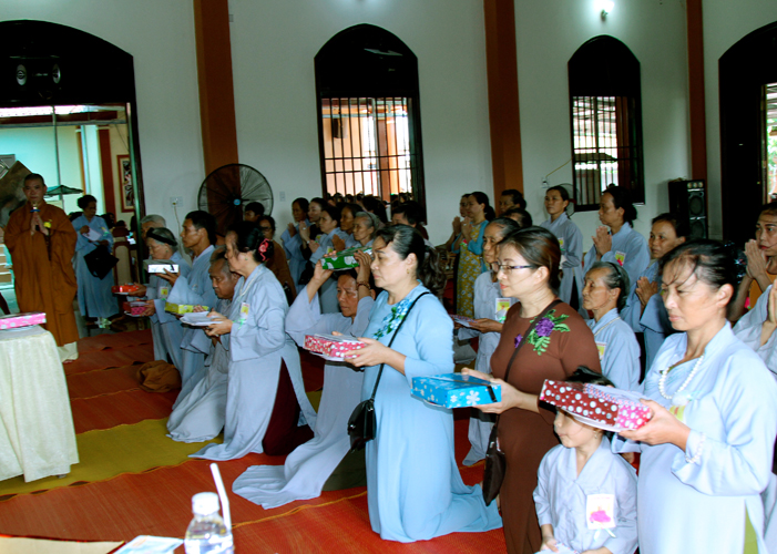 Trong không khí trang nghiêm Đại Chúng đã được Đại Đức Thích Hạnh Nhẫn ban bố những lời pháp thoại về ý nghĩa của ngày Vu Lan Báo Hiếu và nhắc nhở đại chúng luôn sống đúng đạo lý và hiếu hạnh của người con Phật .