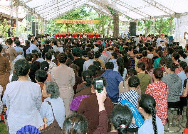 Mở đầu buổi lễ, Chư Tăng cùng bà con Phật tử đã thành kính chắp tay hướng về Chư Tổ và hương linh cửu huyền thất tổ , Ông Bà Cha Mẹ các dòng họ trong sự tưởng nhớ và tôn kính vô biên, sau đó tụng kinh Vu Lan Báo hiếu cầu nguyện cho phụ mẫu tại tiền, lục thân quyến thuộc luôn được phước thọ bình an, ấm no, hạnh phúc; cha mẹ quá vãng cùng cửu huyền thất tổ được sớm sanh về cảnh giới an lành.