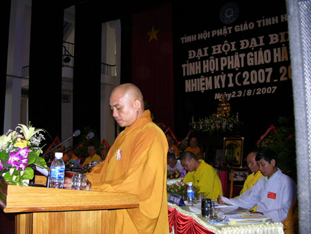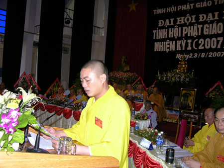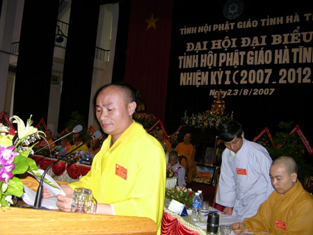 Thượng toạ Thích Bảo Nghiêm đọc diễn văn khai mạc Đại hội đại biểu Phật giáo tỉnh Hà Tĩnh nhiệm kỳ I(2007-2012),