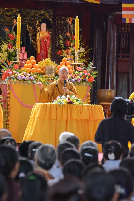 Trước buổi lễ, TT. Thích Nhật Từ đã có thời pháp nói về 10 công ân sinh thành dưỡng dục của cha mẹ. Bài pháp thoại đã gợi lên trong lòng mỗi người con niềm tri ân sâu sắc đối với công lao vời vợi của hai đấng sinh dưỡng. Từ những công lao đó, Thượng Tọa trụ trì cũng đã nhắn nhủ đối với những người con, noi theo gương hiếu hạnh của đức Mục Kiền Liên phải luôn luôn hiếu thuận với cha mẹ. Hiếu thuận không chỉ là việc cung phụng vật chất nuôi dưỡng mà còn là lòng thành kính, anh em sống chung hòa thuận, giúp đỡ mẹ cha về mặt tinh thần.