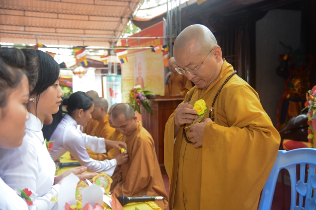 Thể theo truyền thống đó, chùa Tượng Sơn đã tổ chức lễ cài hoa hồng, trì bát khất thực và cúng dương pháp y lên chư Tôn Đức Tăng. Buổi lễ diễn ra dưới sự chứng minh của TT. Thích Nhật Từ – Trụ trì chùa Tượng Sơn cùng Chư Tôn Đức Tăng và hơn 700 Phật tử đến tham dự.