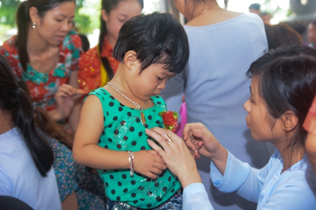 Chương trình chính của buổi lễ là nghi thức cài hoa hồng. Qua bài cảm niệm về công ơn cha mẹ đã khiến mọi người tham dự không sao kìm được giọt nước mắt khi nghĩ về cha, về mẹ. Mẹ thương con dào dạt, mênh mông như biển Thái Bình bao la vô tận; cha cho con nghĩa tình sâu nặng, vời vợi vút cao như núi ngất trời. Công lao đó, nghĩa tình đó những người con không làm sao trả hết. Có những người còn diễm phúc được cài lên ngực mình một đóa hồng đỏ thắm. Cũng có người bất hạnh, không còn mẹ cha bên đời thì lặng lẽ cài lên ngực bông hồng trắng lạnh lẽo. Dù là cài hoa hồng đỏ thắm hay hoa trắng, tất cả đều một lòng hướng về cha mẹ, nghĩ nhớ về nguồn về cội, về những thâm ân to lớn của mẹ cha mà ta phải phụng dưỡng, đáp đền.