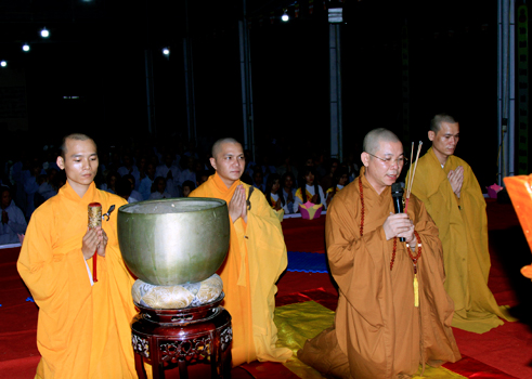 Chứng minh cho buổi lễ có ; Đ Đ Thích Tâm Phương ,ủy viên GHPG Tỉnh Hà Tỉnh , Trưởng ban nghi lễ , kiêm trưởng ban PG Huyện Hương Sơn ,Trưởng ban tổ chức buổi lễ cùng các Chư Tôn Đức Tăng trong Huyện và các ban ngành lãnh đạo các cấp và bà con phật tử đã về tham dự trong đêm hôm nay.