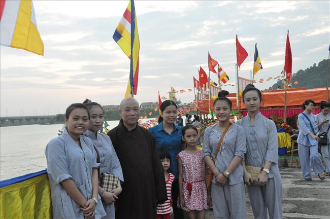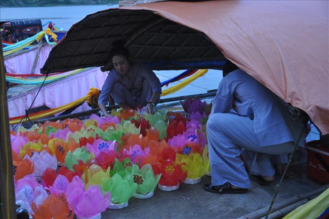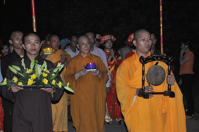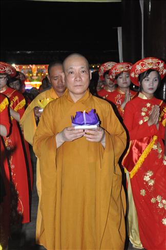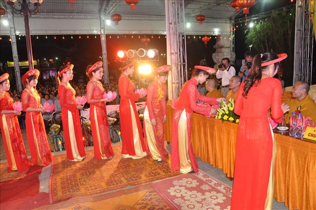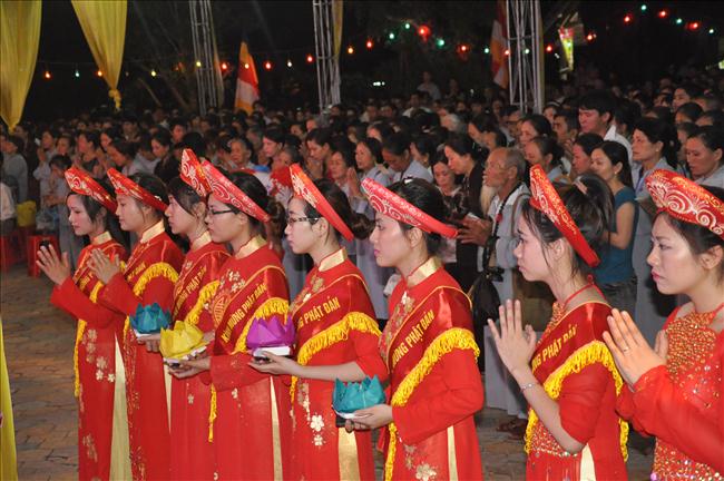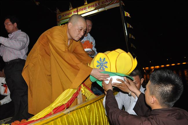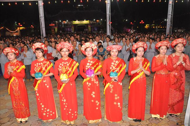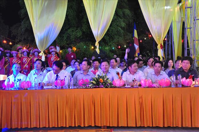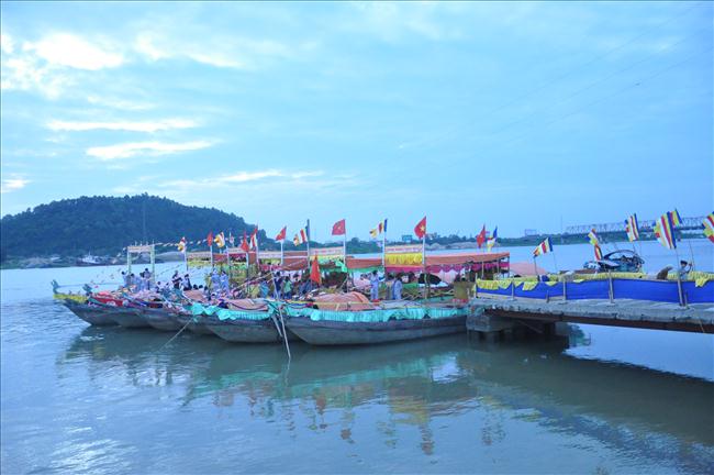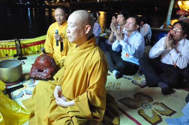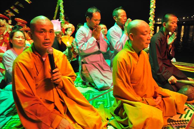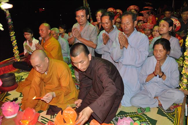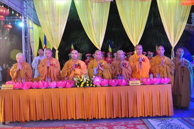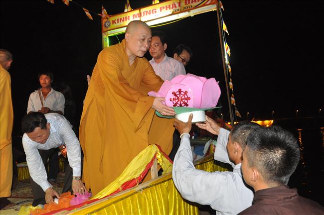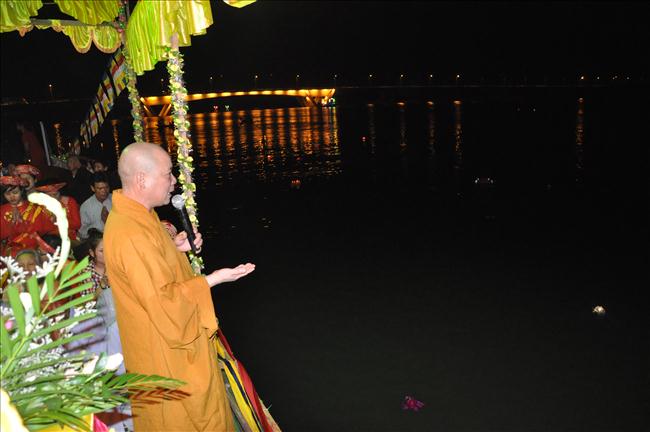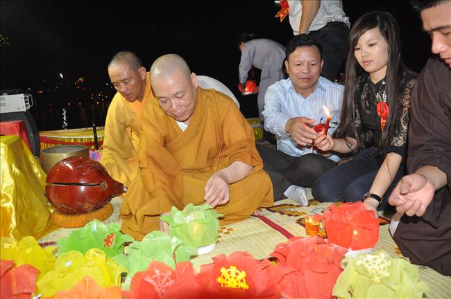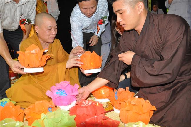 Cuối buổi lễ, chư tôn đức và hàng nghìn nhân dân tín đồ Phật tử đã cùng làm lễ thả hoa đăng trên dòng sông Lam cầu nguyện cho đất nước hòa bình, nhân dân an lạc.