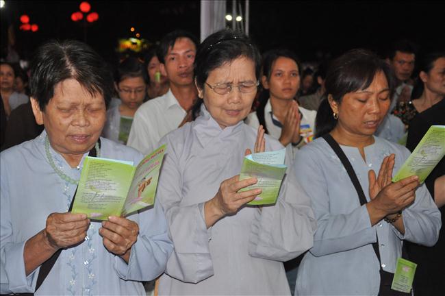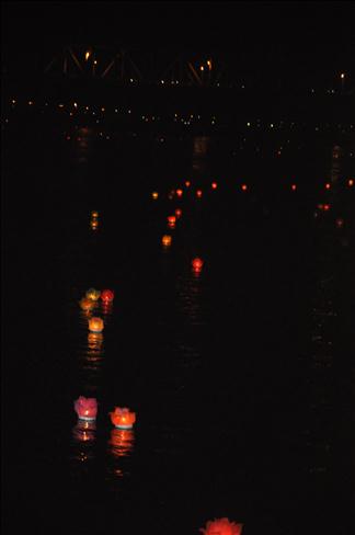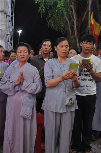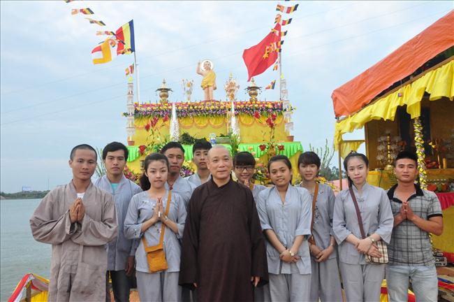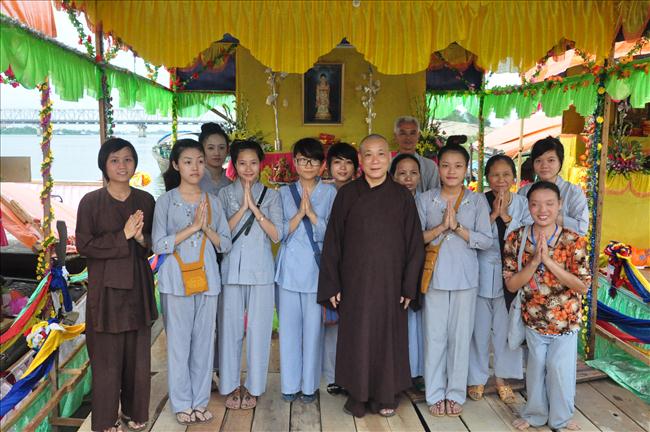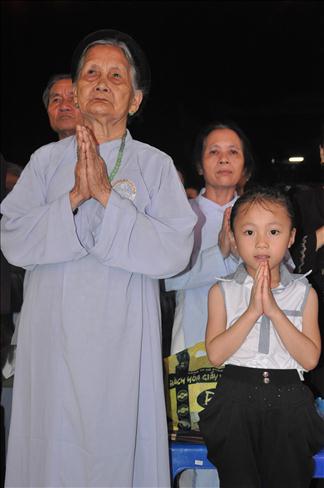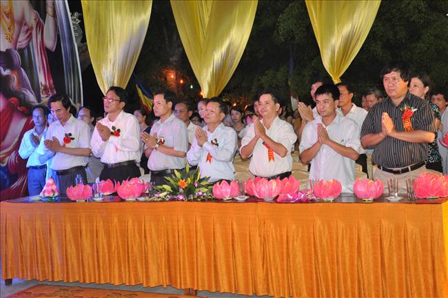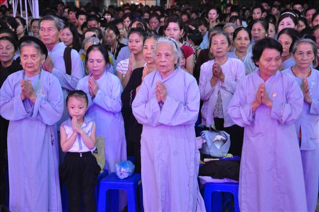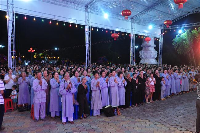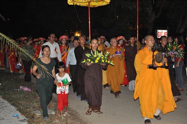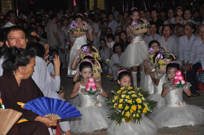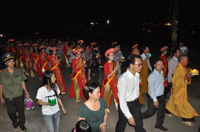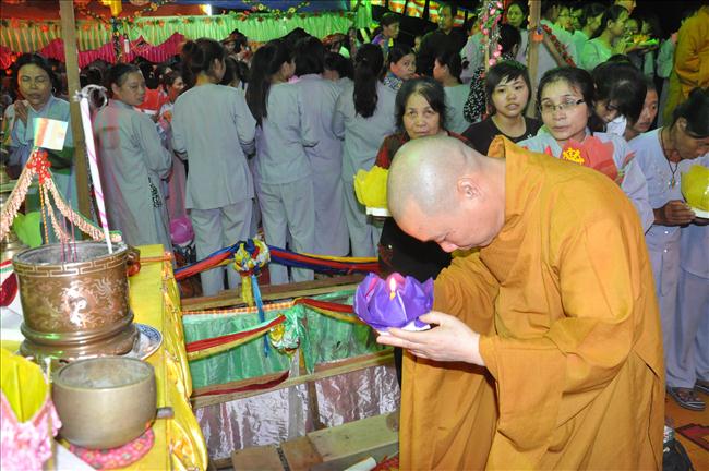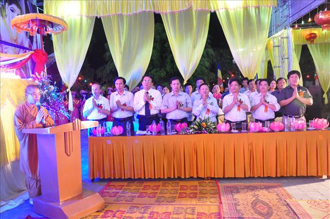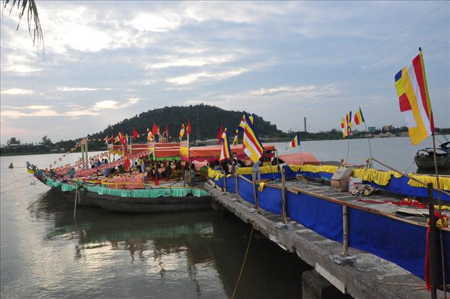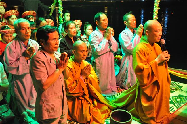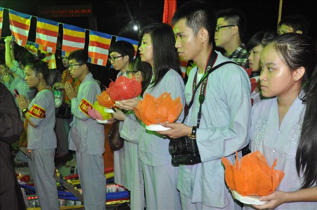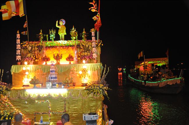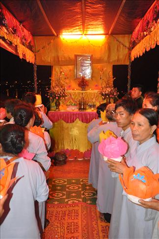 Cuối buổi lễ, chư tôn đức và hàng nghìn nhân dân tín đồ Phật tử đã cùng làm lễ thả hoa đăng trên dòng sông Lam cầu nguyện cho đất nước hòa bình, nhân dân an lạc.