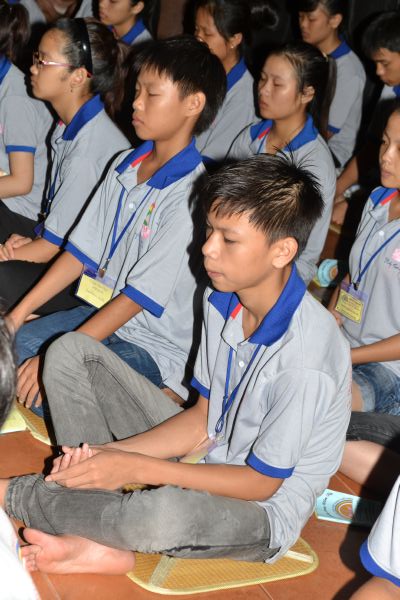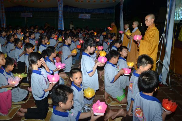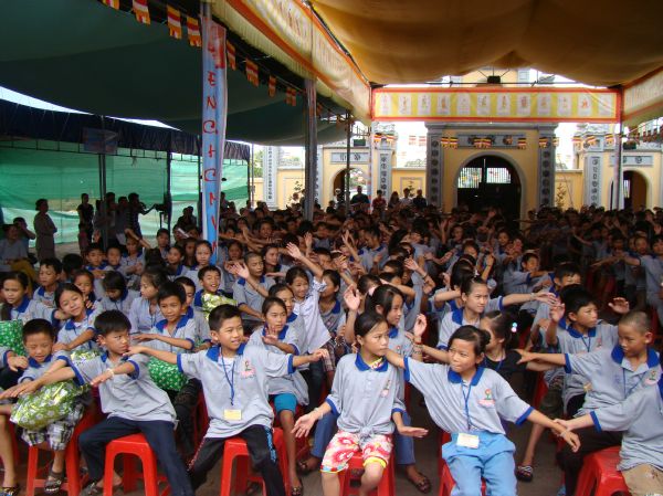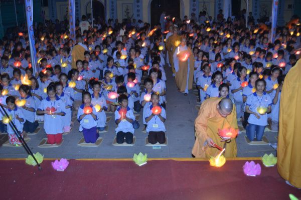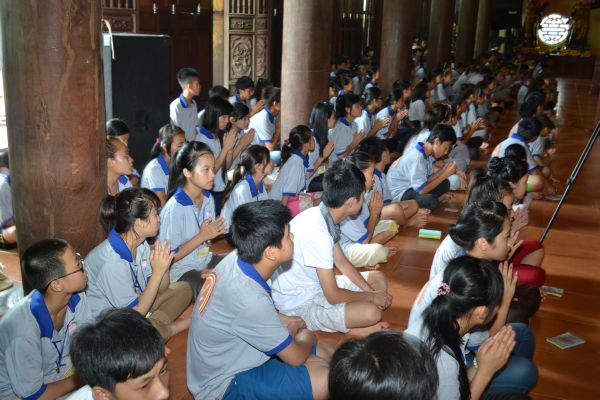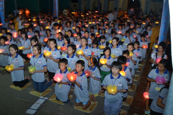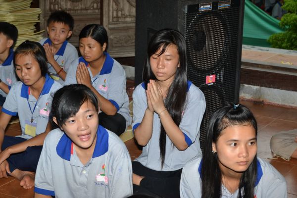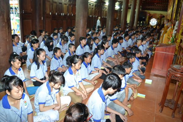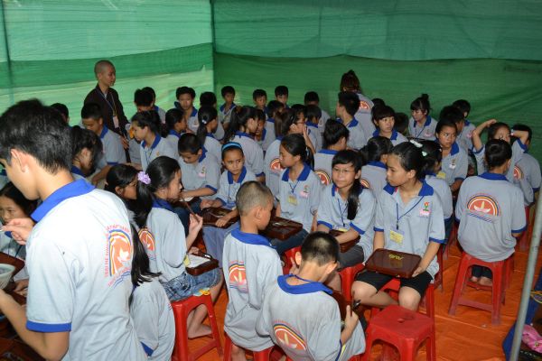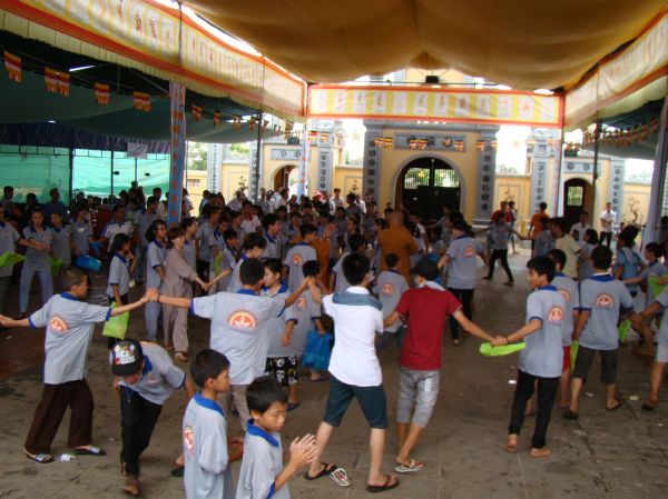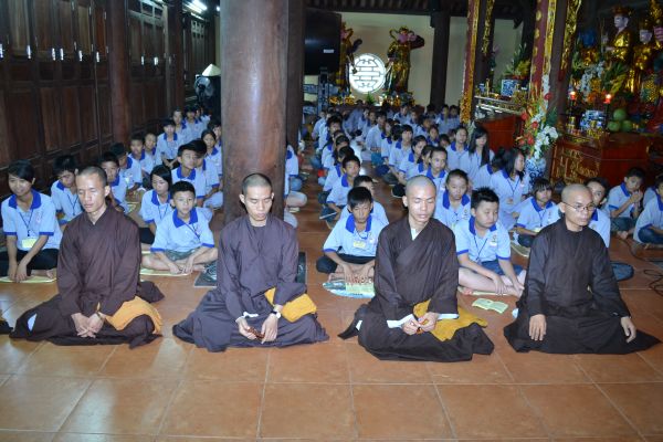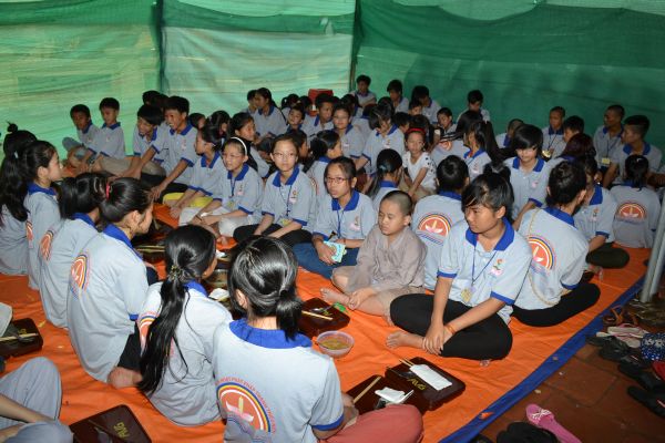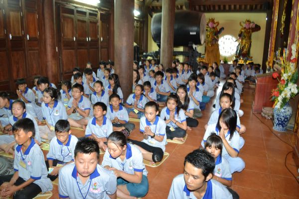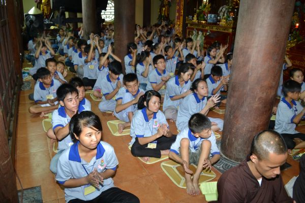 Trong các chương trình sinh hoạt như: trò chơi dân gian, trò chơi chung sức, rung chuông chùa, thì chương trình nghe pháp thoại là một trong những chương trình để lại cho các em nhiều ấn tượng và cảm xúc.