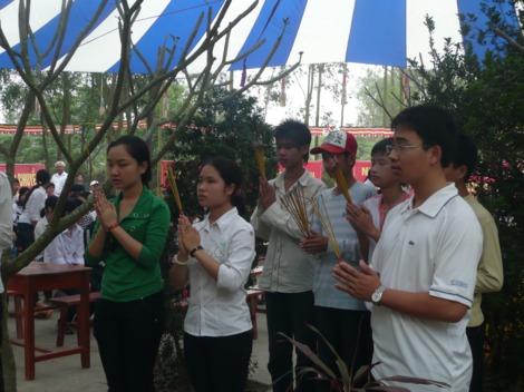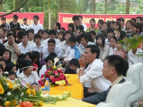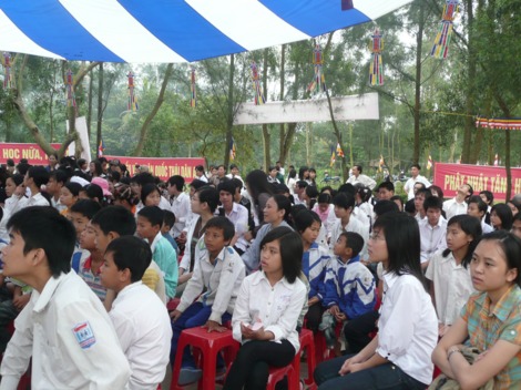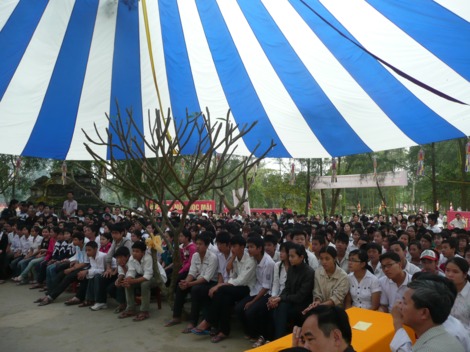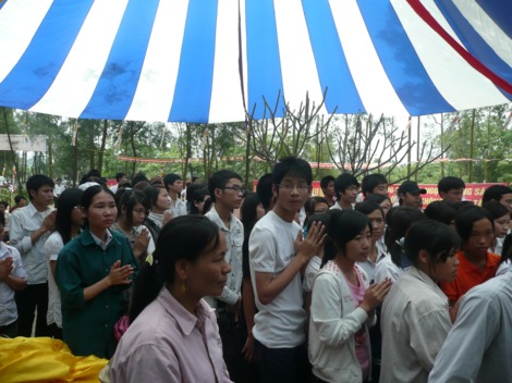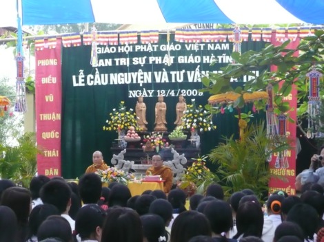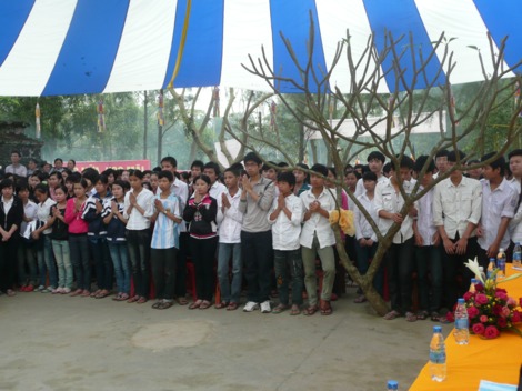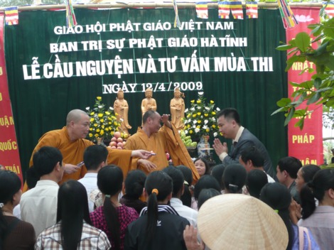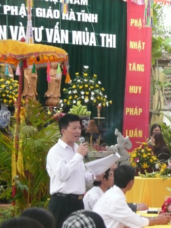 Tham dự buổi lễ còn có đại diện Sở Nội vụ, Sở Công an, các ban ngành của tỉnh Hà Tĩnh và huyện Nghi Xuân cùng hàng trăm vị là cha mẹ của các sĩ tử tham gia lễ cầu nguyện và tư vấn mùa thi này.