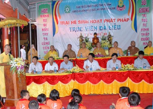 Cuối cùng là lời đạo từ của chư tôn đức trong Ban trị sự Phật giáo tỉnh Hà Tĩnh. Đại đức Thích Chiếu Tuệ đã tán thán công đức của Ban tổ chức hội trại nhất là Ban hướng dẫn Phật tử tỉnh Hà Tĩnh, Đại đức cũng không quên khuyến tấn tinh thần ham học Phật pháp của các bạn trại sinh. Đại đức mong muốn các khóa sinh có thật nhiều sức khỏe, ngoan hiền, vâng lời quý thầy cô và thực hiện tốt nội quy mà Ban tổ chức hội trại đã đề ra, không phụ lòng tin tưởng của cha mẹ khi gửi các con về tham gia sinh hoạt hội trại cũng như sự vất vả của quý thầy cô trong Ban tổ chức. Cuối lời, Đại đức chúc hội trại thành công tốt đẹp.